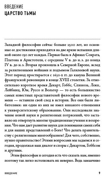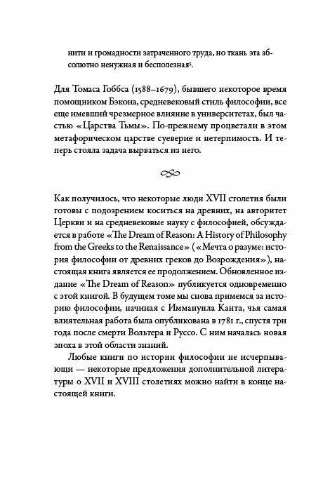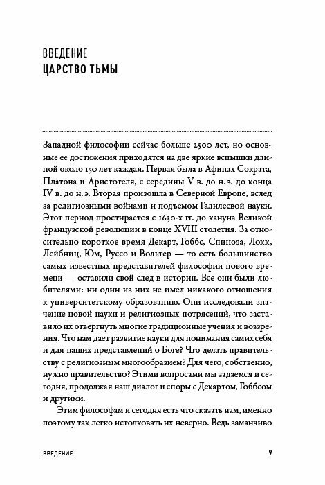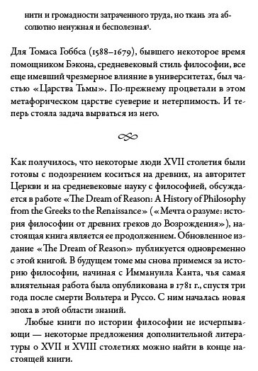 Это увлекательная история идей и людей, которые совершили величайший умственный прорыв, своего рода революцию в умах, которая перевернула старые способы мышления. Благодаря этой книге я увидела таких личностей как Декарт, Гоббс,Спиноза, Волтер, Руссо не просто как мастодонтов мысли, но как обычных людей. Такая жизненная подача их идей, возродила во мне интерес к философии, который я думала так и останется на студенческой скамье.