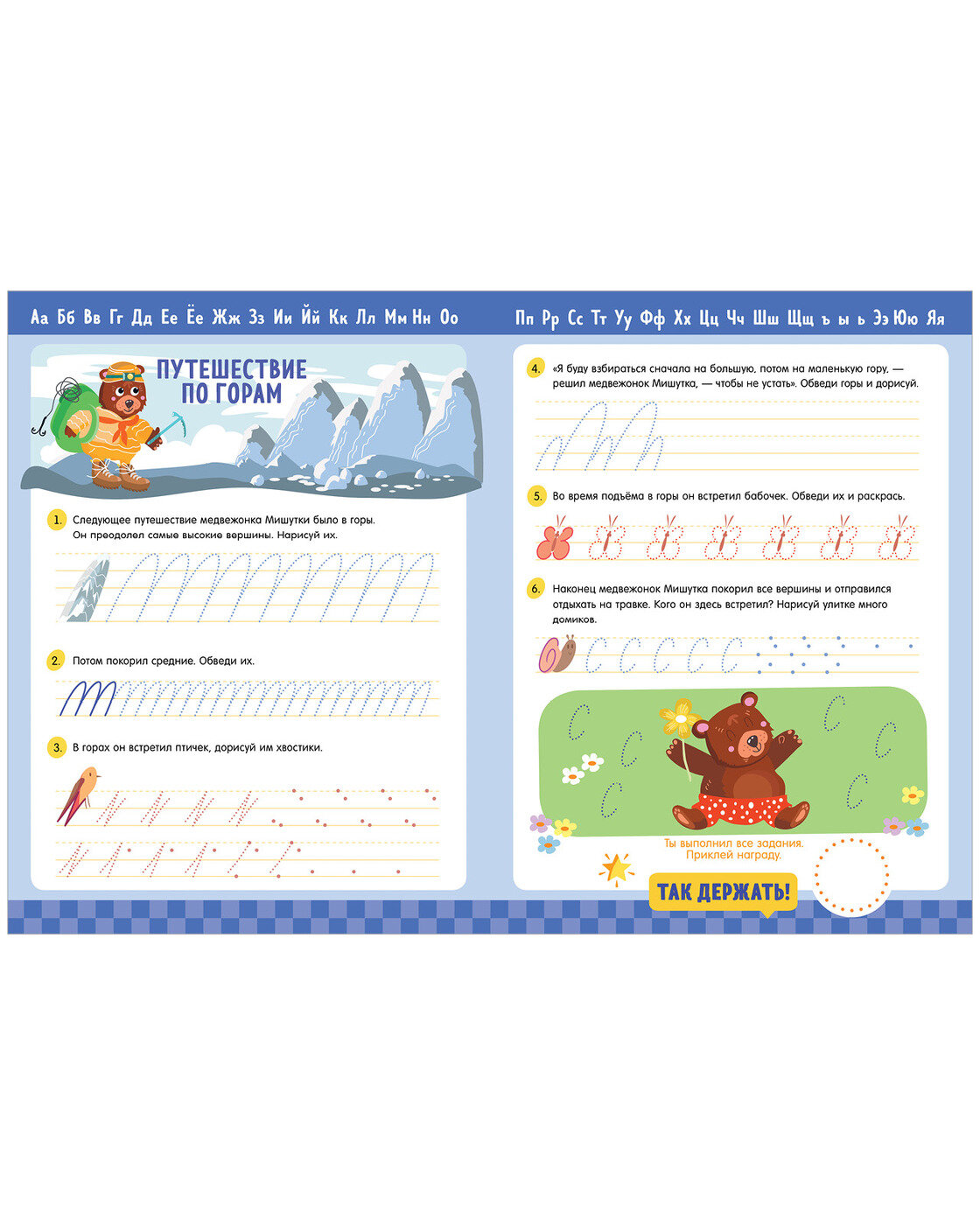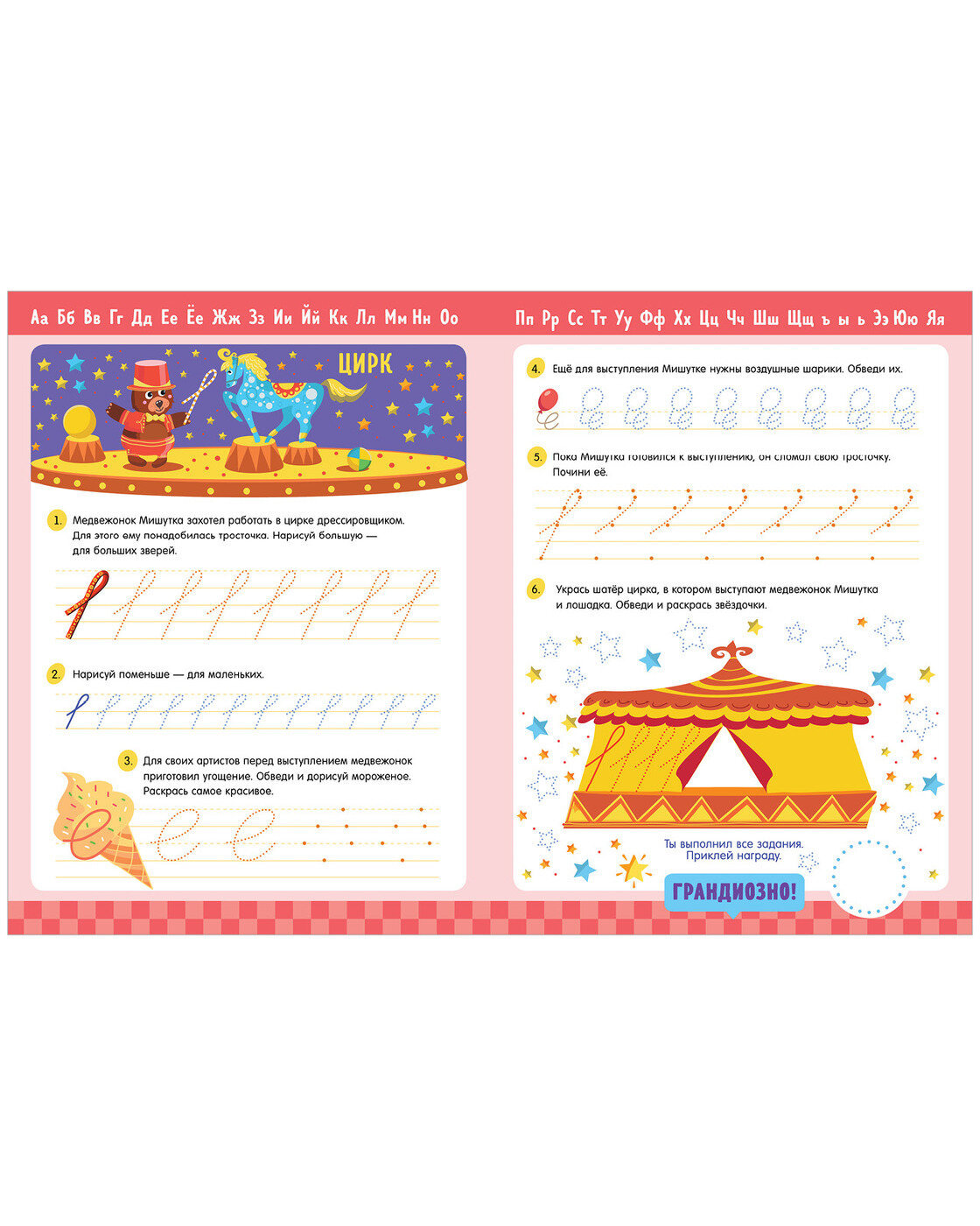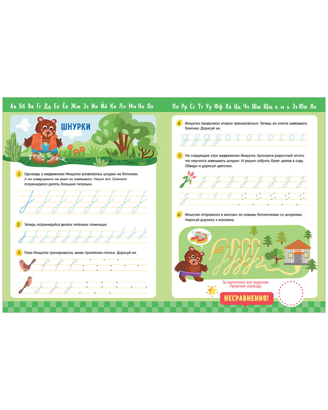 С помощью прописей с наклейками ваш ребёнок подготовится к чтению и письму в процессе весёлой игры! В этих тетрадях-тренажёрах собраны 100 увлекательных игр и заданий на каждый день. -Добрые сказки вовлекут ребёнка в процесс обучения. -Милые герои обеспечат прекрасное настроение и помогут легко справиться с заданиями. -Весёлые наклейки не дадут заскучать и превратят обучение в захватывающую игру. -Мотивирующие слова создадут ситуацию успеха. -Пошаговая инструкция для родителей подскажет, как заниматься по прописям.
