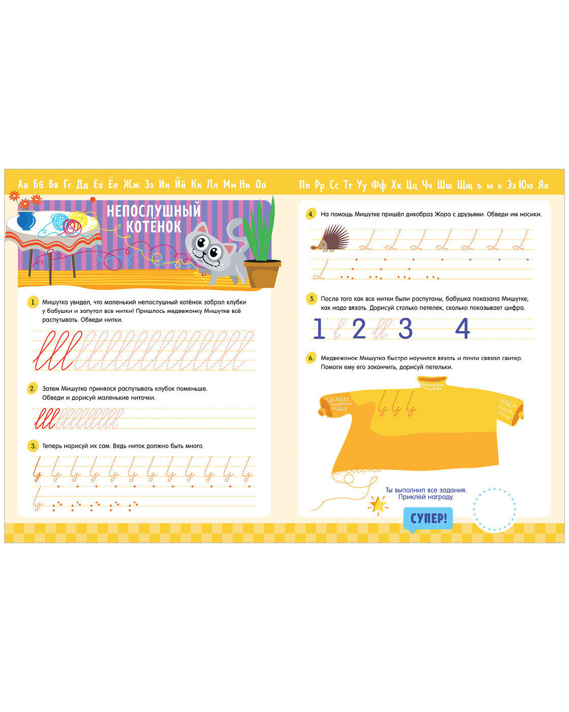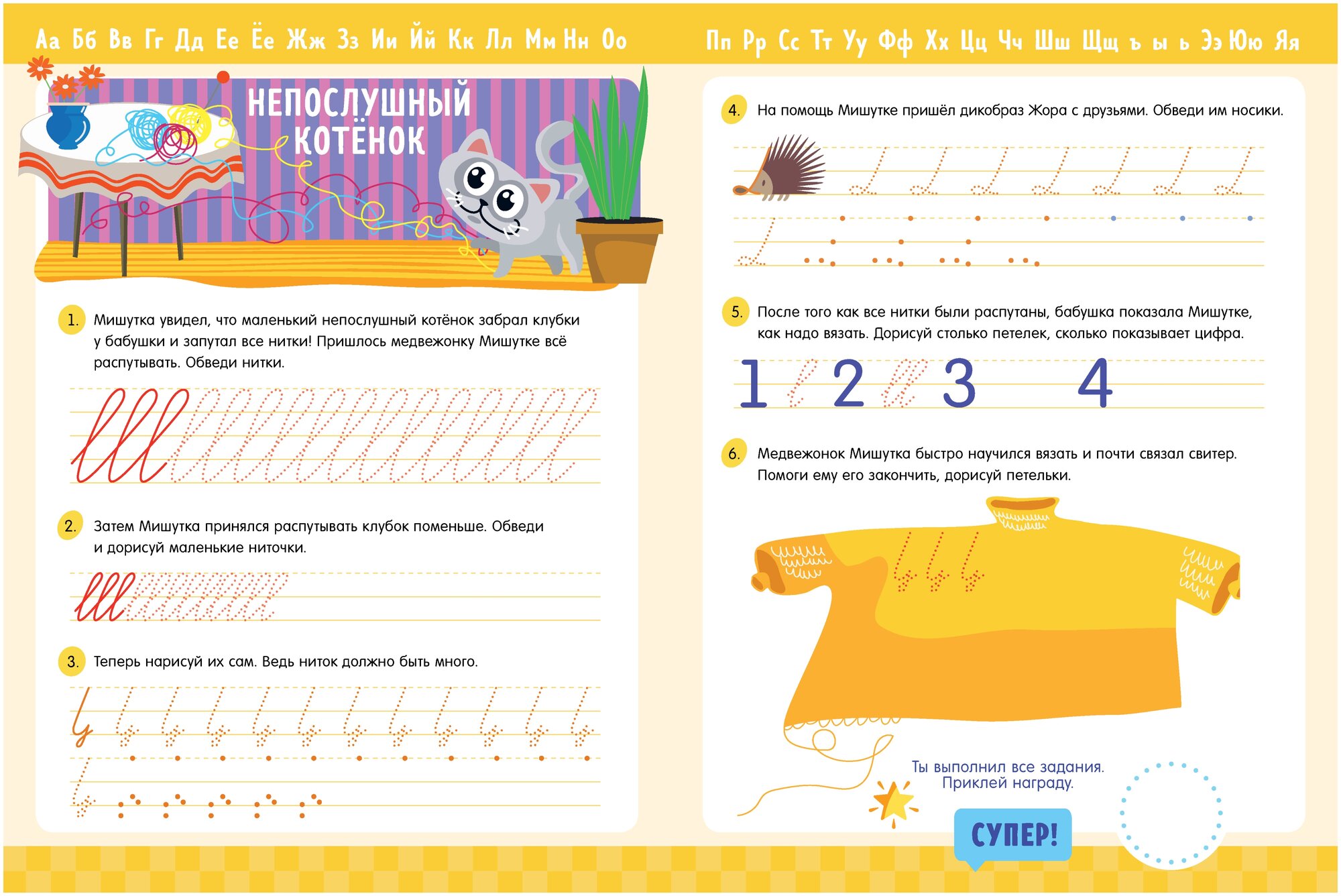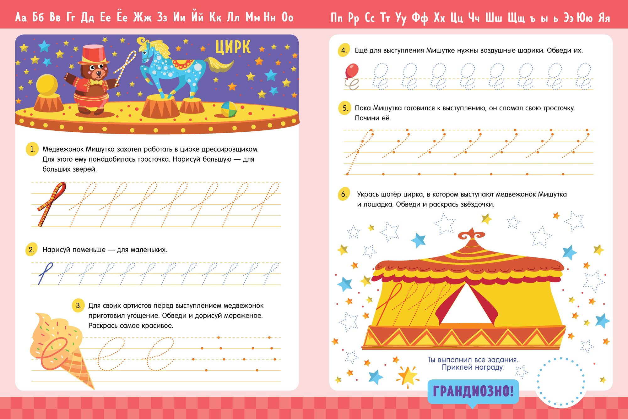С помощью прописей с наклейками ваш ребёнок подготовится к чтению и письму в процессе весёлой игры! В этих тетрадях-тренажёрах собраны 100 увлекательных игр и заданий на каждый день. -Добрые сказки вовлекут ребёнка в процесс обучения. -Милые герои обеспечат прекрасное настроение и помогут легко справиться с заданиями. -Весёлые наклейки не дадут заскучать и превратят обучение в захватывающую игру. -Мотивирующие слова создадут ситуацию успеха. -Пошаговая инструкция для родителей подскажет, как заниматься по прописям.