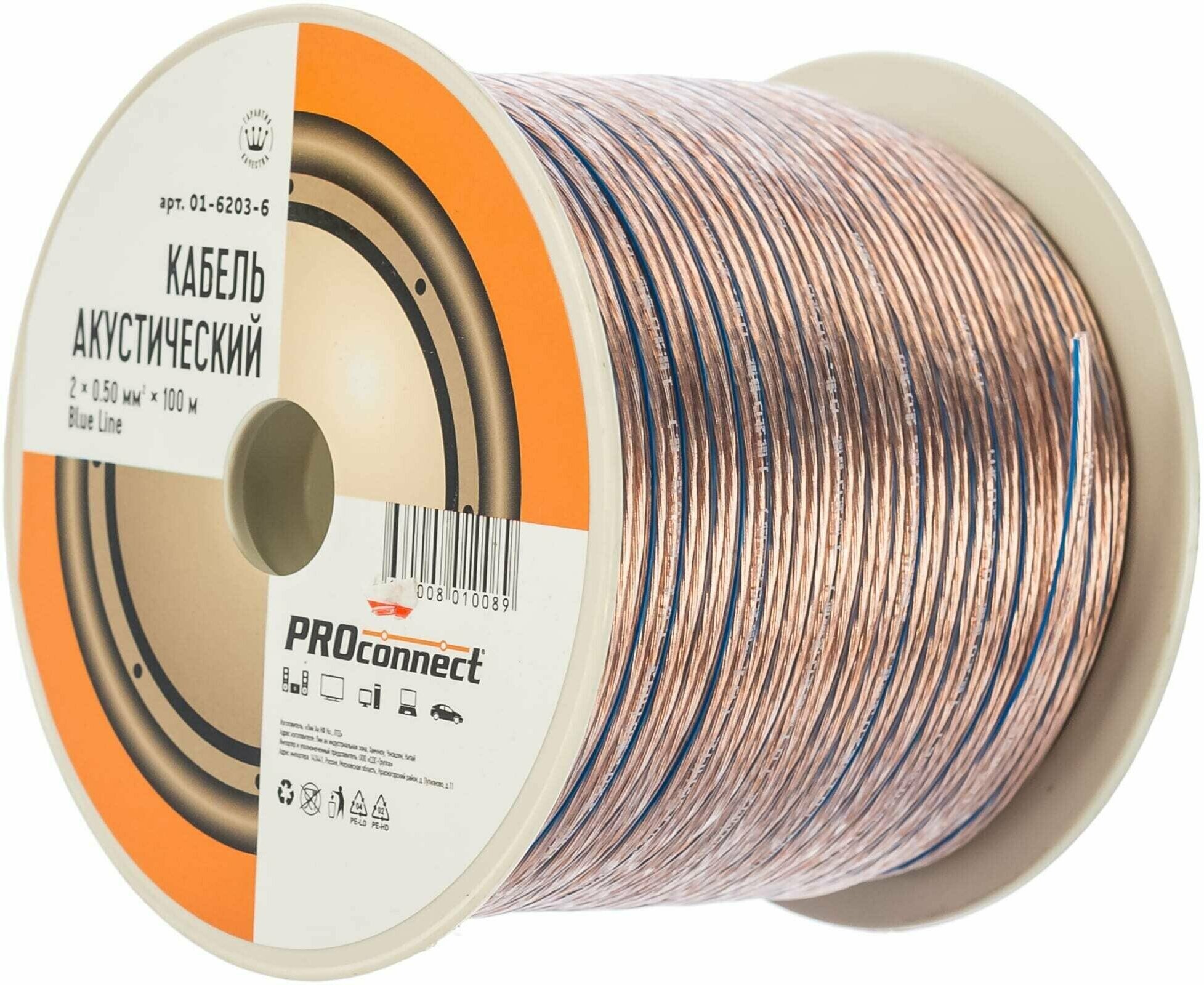Кабель PROconnect 2х0.50 мм², прозрачный BLUELINE, 100 м.