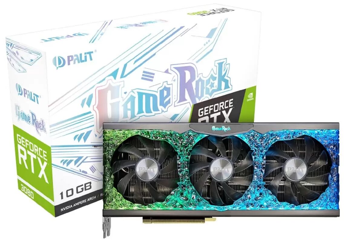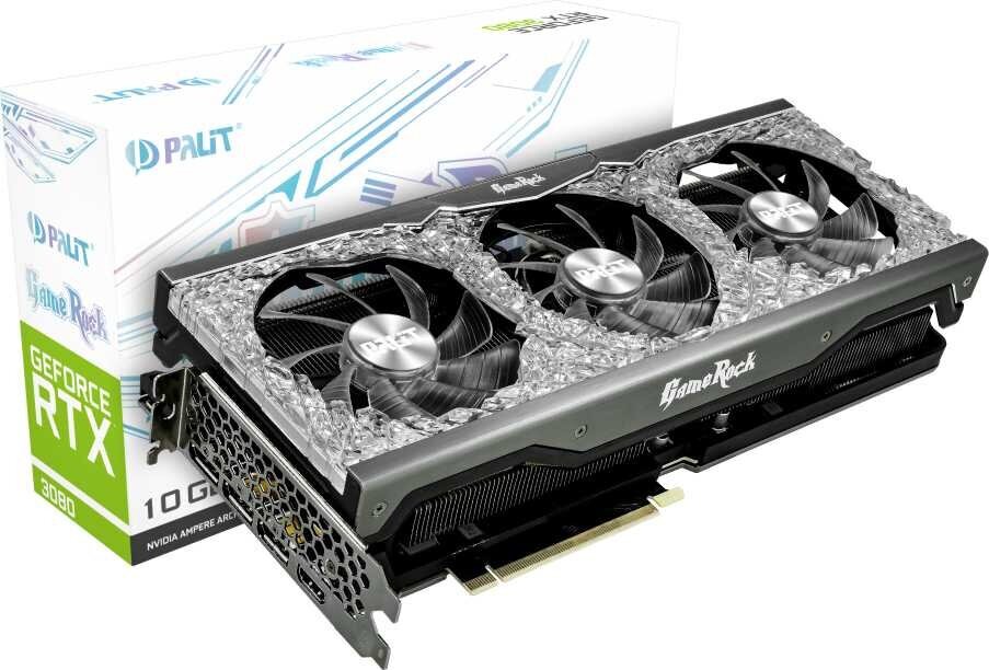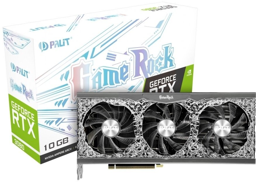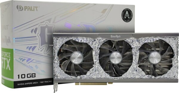 Видеокарта PCI-E Palit 10GB GDDR6X 320bit 8nm 1440/19000MHz HDMI/3*DP GeForce RTX 3080 GameRock 10G