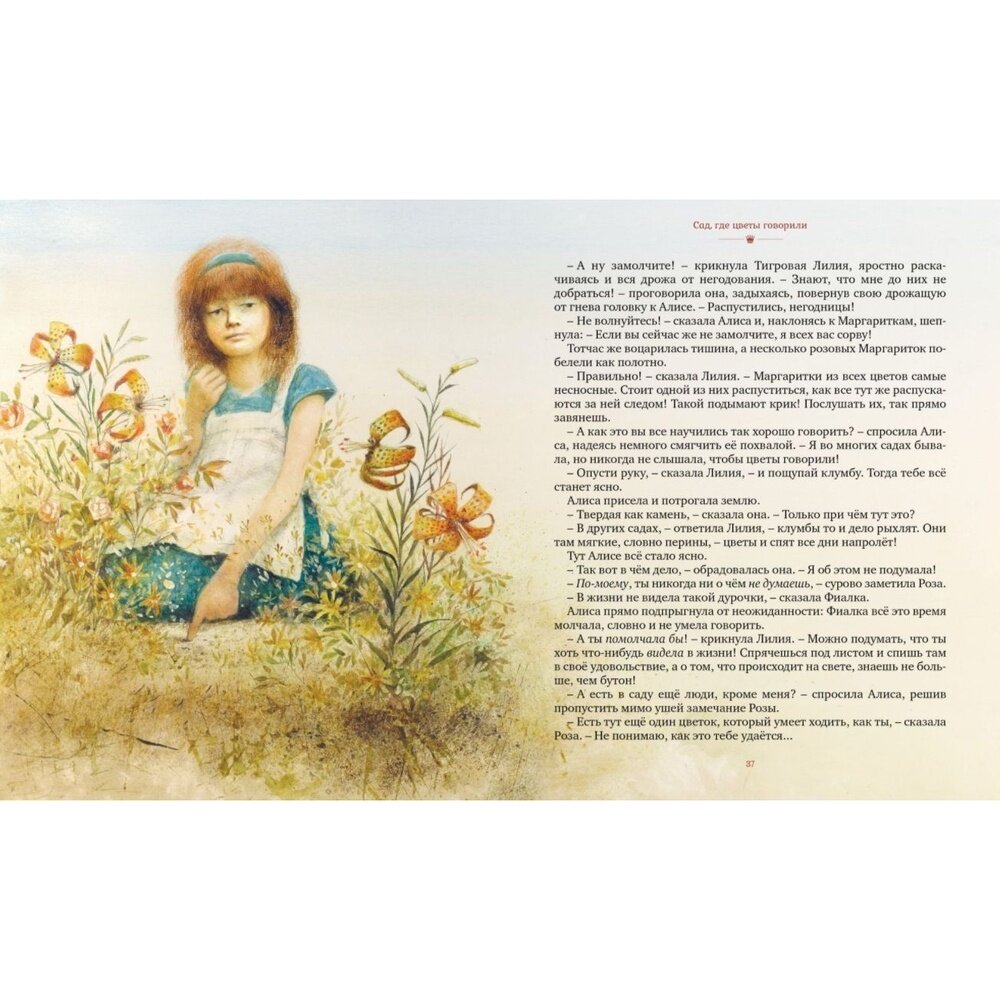 Красивейшее издание легендарной книги с иллюстрациями Роберта Ингпена. Это не иллюстрации, это настоящие картины, хотите приучать ребенка с детства к прекрасному вот вам самый действенный способ. Взрослые тоже получат нескончаемое удовольствие от издания. Тот случай, когда берешь книгу в руки и боишься выпустить, это ощущение от кончиков пальцев, зрительных нервов, запаха доброй книги и потрясного содержания, которое и через тысячу лет будет захватывать каждого и уносить в мир Зазеркалья, откуда счастливые не вернуться полностью оставшись немного детьми на всю жизнь....