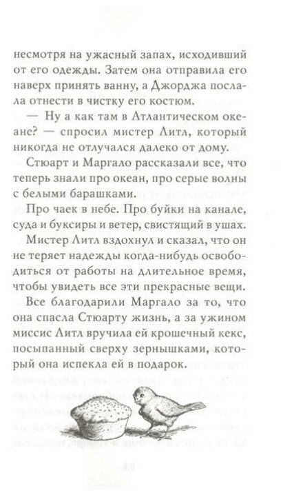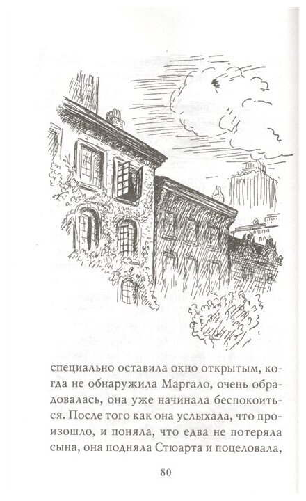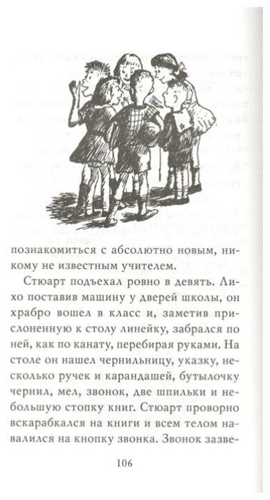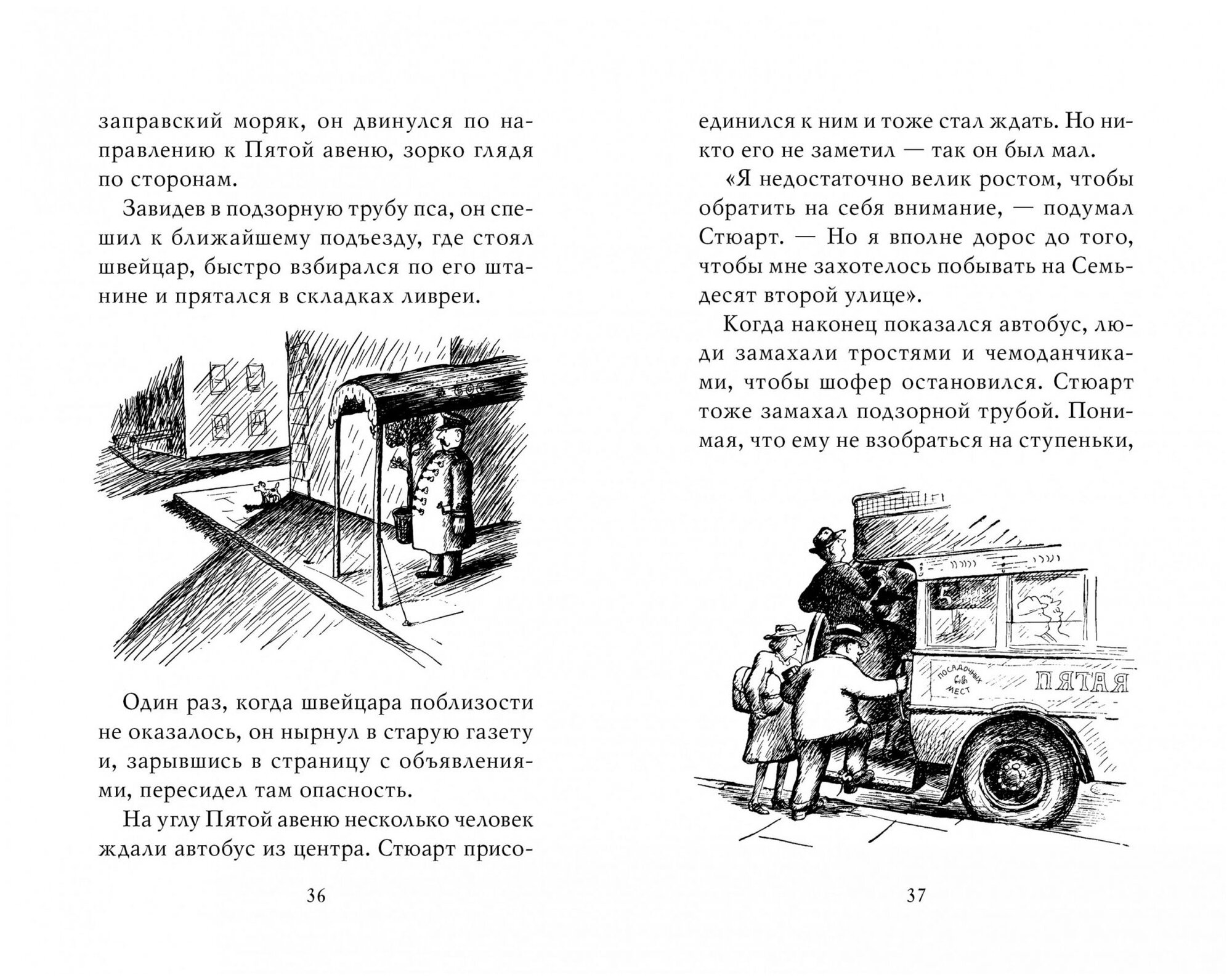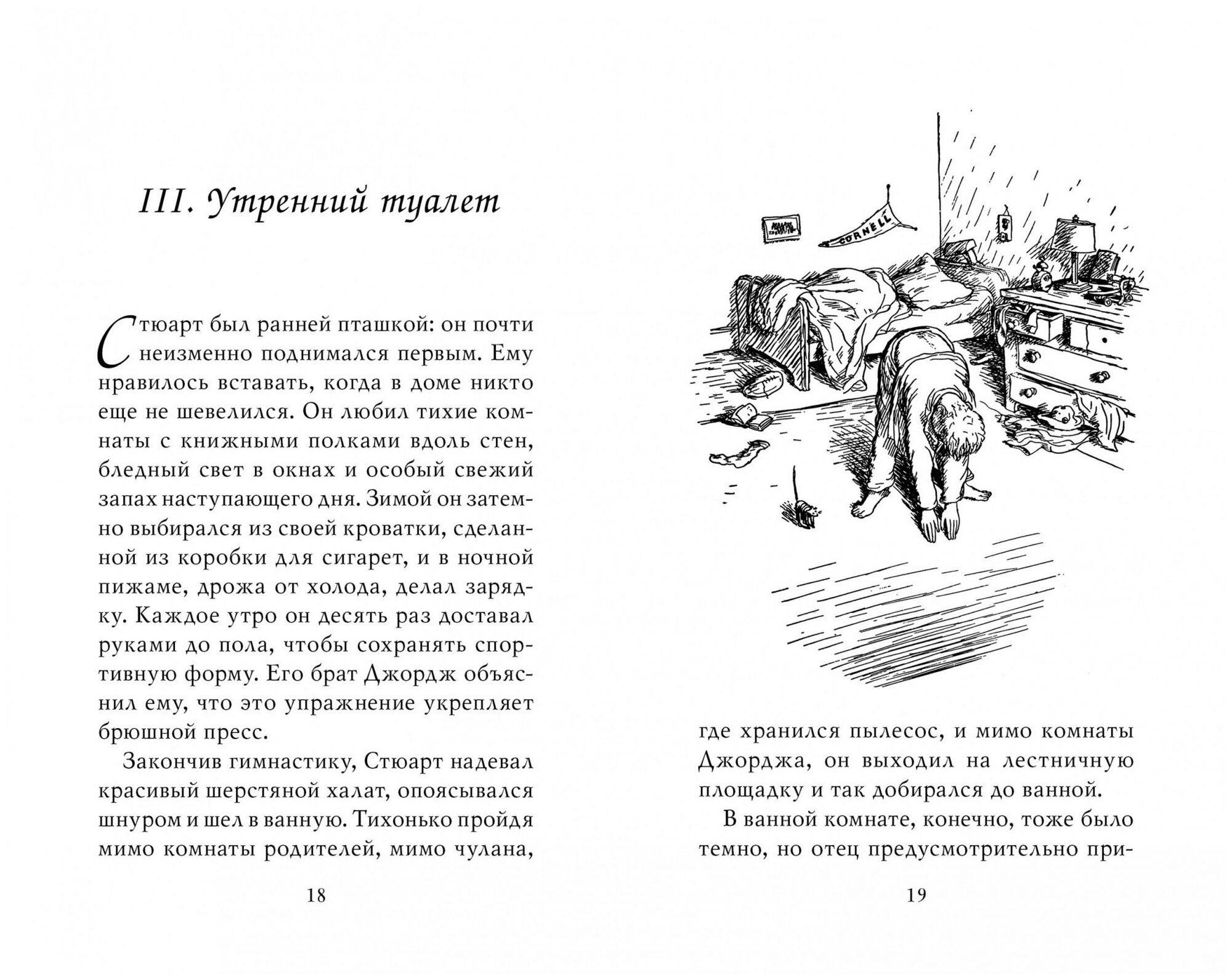 Замечательная сказочная повесть о приключениях маленького мышонка, живущего в семье людей. На страницах книги с главным героем происходит множество увлекательных и опасных событий. Обретя любящих родителей и брата и пытаясь вести себя как человек, главный герой все равно сталкивается с проблемами, грозящими миру грызунов - и кошки, и хищные птицы весьма заинтересованы в необычном объекте охоты. И все же Стюарт не унывает и смотрит на мир с детским любопытством. Книга, несомненно, понравится детям младшего школьного возраста, которым будет интересно взглянуть на похождения мыши и взглянуть на окружающий мир с совсем иного ракурса.