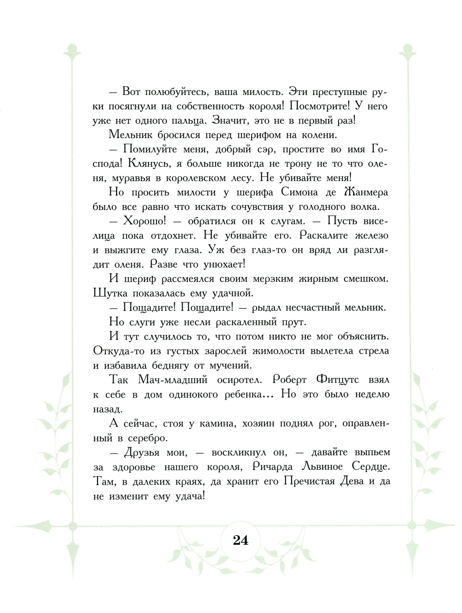 Храбрость, справедливость, доблесть, честь, преданность. Лук и стрелы, мечи, ветер свободы, рыцари и короли, разбойники и бесчестные шерифы. И удивительный язык повествования, баллада со страниц красивой книги.