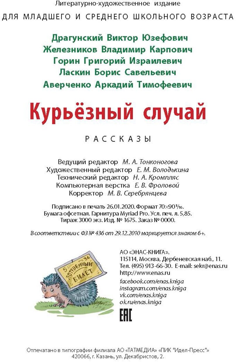 Курьёзный случай : рассказы (Драгунский В.Ю.; Железников В.К.; Горин Г.И.; Ласкин Б.С.; Аверченко А.Т.); Энас-книга, 2020