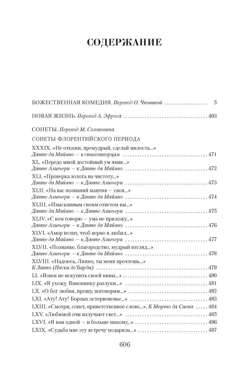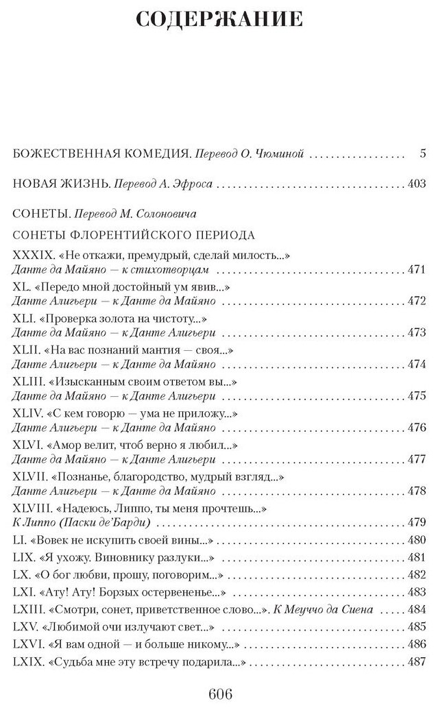 Бессмертная «Божественная комедия», воссоздающая целую Вселенную; интимная, проникнутая глубоким лиризмом «повесть» о первой любви «Новая жизнь», эмоциональные сонеты-послания – все произведения, представленные в настоящей книге, объединены темами любви, дружбы, движения души к свету и обновлению. Но ключевым связующим звеном между ними остается, конечно, их главный герой – сам Данте.