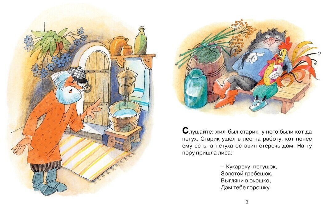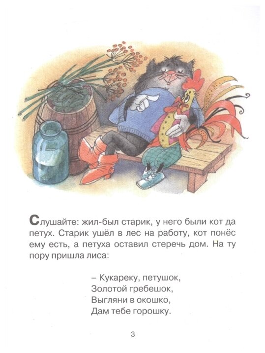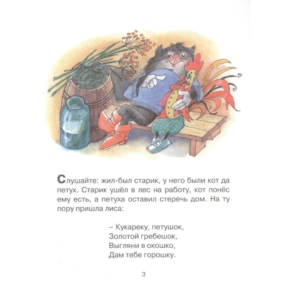 Одна из самых любимых народных сказок из сборника А.Н. Афанасьева «Русские детские сказки». Этот сборник был издан более ста лет назад и с тех пор пользуется неизменной популярностью. Его автор, известный учёный-фольклорист XIX века, пересказывая сказки для детей, не только бережно сохранил в них интонацию и язык народных сказителей, но и сумел передать сам дух русского народа. В сказке о том, как лиса украла петуха, а кот спас его и наказал лису, утверждается вера людей в торжество правды и справедливости.