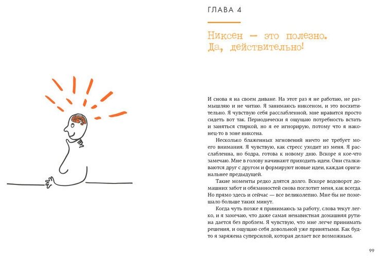 Нидерланды — одна из самых счастливых стран в Европе и в мире. Важная составляющая счастья и душевного здоровья голландцев — никсен, или искусство ничегонеделания. Этот «секрет национального счастья» глубоко укоренен в нидерландской культуре, но освоить его может каждый, независимо от этнической принадлежности, языка и места проживания. Для этого не требуется никаких вложений: вам не придется ничего покупать, менять себя, перестраивать свой дом, обновлять гардероб, учиться медитировать или садиться на диету. Все, что нужно, — ничего не делать! Чтобы разгадать загадку никсена, журналист, писатель и переводчик Ольга Меккинг провела всесторонние исследования, пообщалась с самыми разными экспертами — психологами, социологами, коучами, историками, культурологами, а также с самими голландцами и с теми, кто переехал в Нидерланды из других стран и осваивает национальные традиции на месте. В результате у нее получилась остроумная и практичная книга, предлагающая действенные инструменты для решения ежедневных проблем и улучшения качества жизни здесь и сейчас. Даже если вы очень занятой человек и ваши дни расписаны по минутам, Меккинг покажет, как находить время на никсен дома, на работе, в дороге, и поможет не только научиться расслабляться и отпускать лишнее, но и стать счастливее, здоровее и продуктивнее.