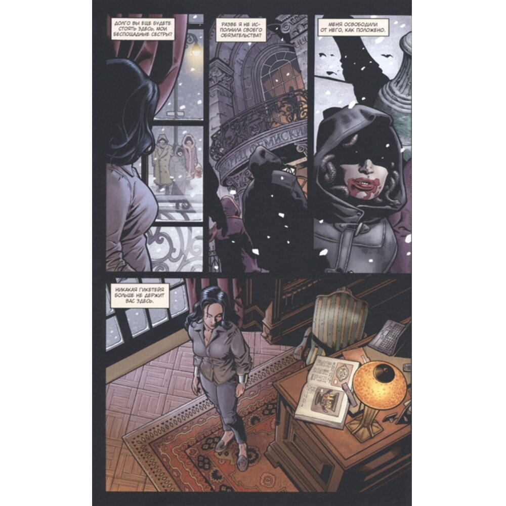 А, история однако вышла куда сложнее и глубже, чем можно подумать по этой двусмысленной обложке. Может это ещё и от того, что лично я не так часто читаю комиксы про Диану и не могу судить как много внимания уделяется мифологии ее существования (всё только переработки начала ее истории и попадались). Мифологии этой самой тут все пропитанно и это выглядит очень органично и любопытно. Гикетейя - любопытная вещь, накладывающая на принцессу амазонок определенные обязательства, которые могут пойти вразрез с мнением других героев, и никто для этой истории не подошел бы лучше Бэтмена, ведь его философия законности не придерживается никаких старых мифических законов. Рисовка живая, все красиво.