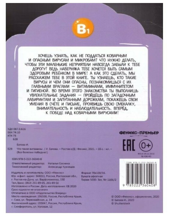 Хочешь узнать, как не поддаться коварным и опасным вирусам и микробам? Что нужно делать, чтобы эти маленькие неприятели навсегда забыли к тебе дорогу? Ведь наверняка тебе хочется быть самым здоровым ребенком в мире! А как это сделать, мы расскажем тебе в этой книге. Ты узнаешь, кто такие вирусы и чем они опасны, познакомишься с их главными врагами – витаминами, иммунитетом и гигиеной. Во время этого знакомства ты выполнишь увлекательные задания – пройдешь по загадочным лабиринтам и запутанным дорожкам, покажешь свои умения в счете и письме, проявишь свою смекалку, внимательность и наблюдательность. Вперед, к победе над коварными вирусами!
