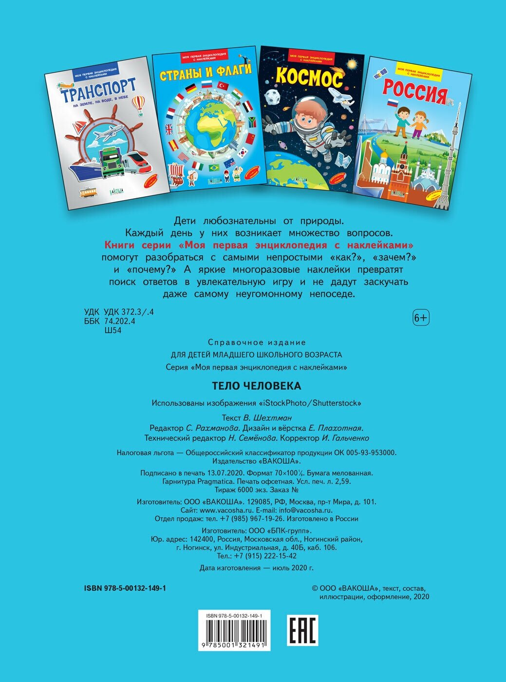 Тело человека. Моя первая энциклопедия с наклейками (Шехтман Вениамин Маевич); Вакоша, 2022