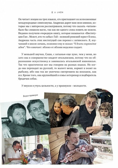 "Раньше я, бросаясь в графоманию, считал: не надо замахиваться на монументальные мемуары со скромнейшими разделами "Я о себе" и "Они обо мне, а я о них". Теперь подумал: а почему бы и нет? Пусть еще одна книжонка рухнет в залежи литературных запасников. "Увековечить" - корявое и противное слово, хоть и точное по смыслу. Всех, кто мне дорог и кого я не забываю, увековечить невозможно, а хочется. И я придумал для себя принцип выбора персонажей моей судьбы. Я подошел к книжным полкам и под удивленные взгляды домашних выложил на пол всю литературу, кроме Шекспира, Гоголя, Бомарше и других авторов, встречи с которыми не запомнились. В итоге отобрал только книжки с дарственными автографами друзей. Захотелось сказать им в ответ что-то очень нежное, честное и остроумное, но это вещи несовместные, поэтому приходится быть искренним".