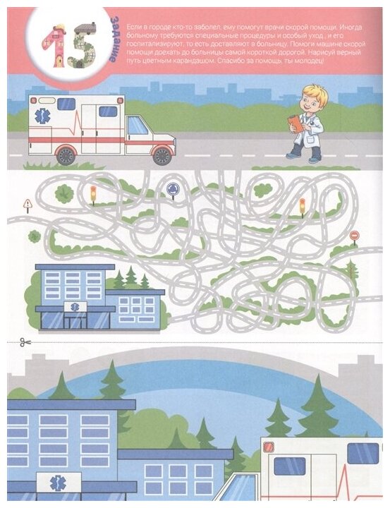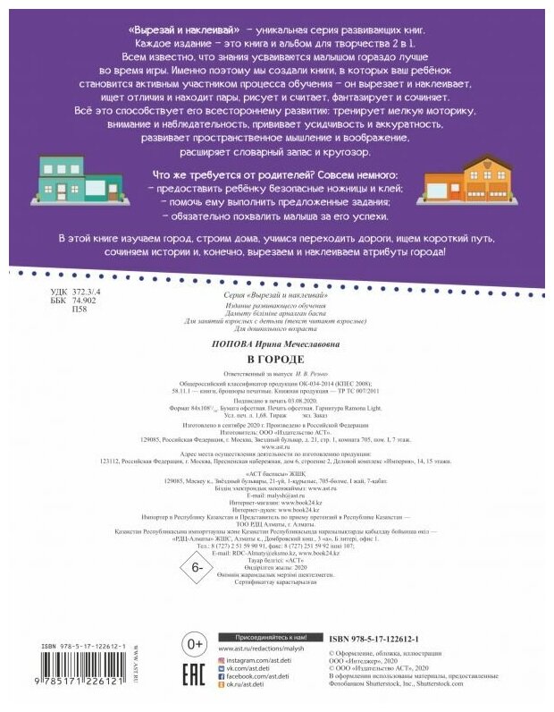 В этой книге изучаем город, строим дома, рисуем дороги, ищем короткий путь, сочиняем истории и, конечно, вырезаем и наклеиваем атрибуты города!