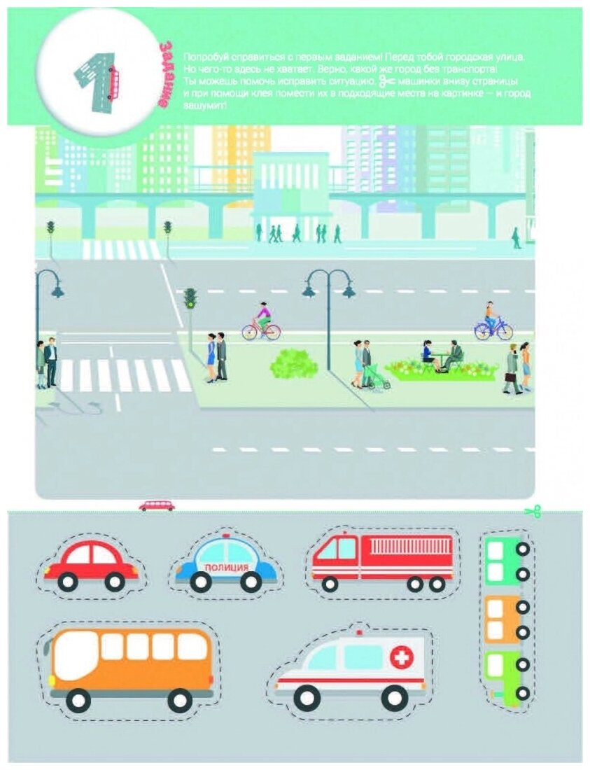 В этой книге изучаем технику и транспорт, собираем пазлы, ищем отличия, рисуем дороги и, конечно, вырезаем и наклеиваем машинки!