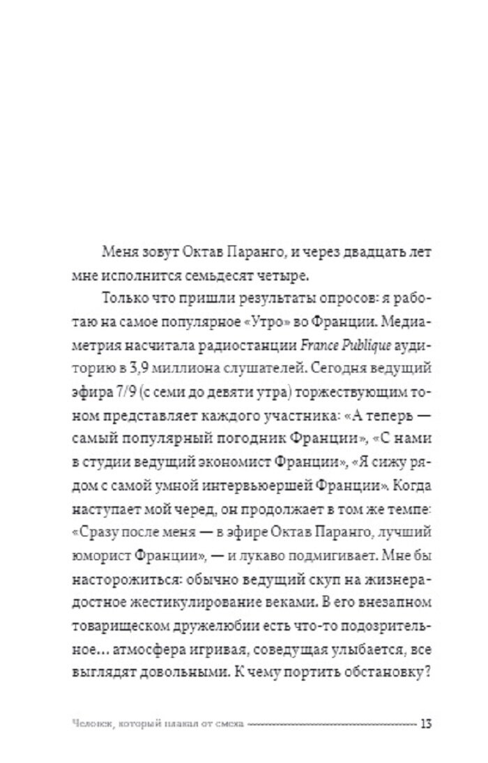 «Человек, который плакал от смеха» – оригинальный роман с сумасшедшинкой, бичующий недостатки общества. Герой и автор похожи, как две капли воды. Октав Паранго исповедуется не щадя себя, выводы делайте сами!
