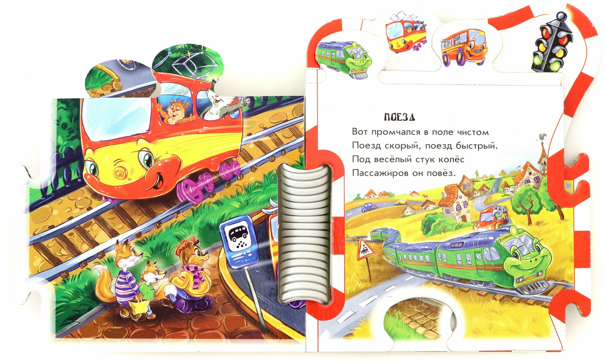 Красочная книжка-игра-пазл нам понравилась! Удобный размер для детских ладошек и плотные странички. Незамысловатые детские стишки про такси, автобус, поезд и трамвай:) Из этих пазлов можно собрать картинку. Наш малыш в 1,5 был доволен поиграть с книжкой:) Спасибо Вам большое!:)