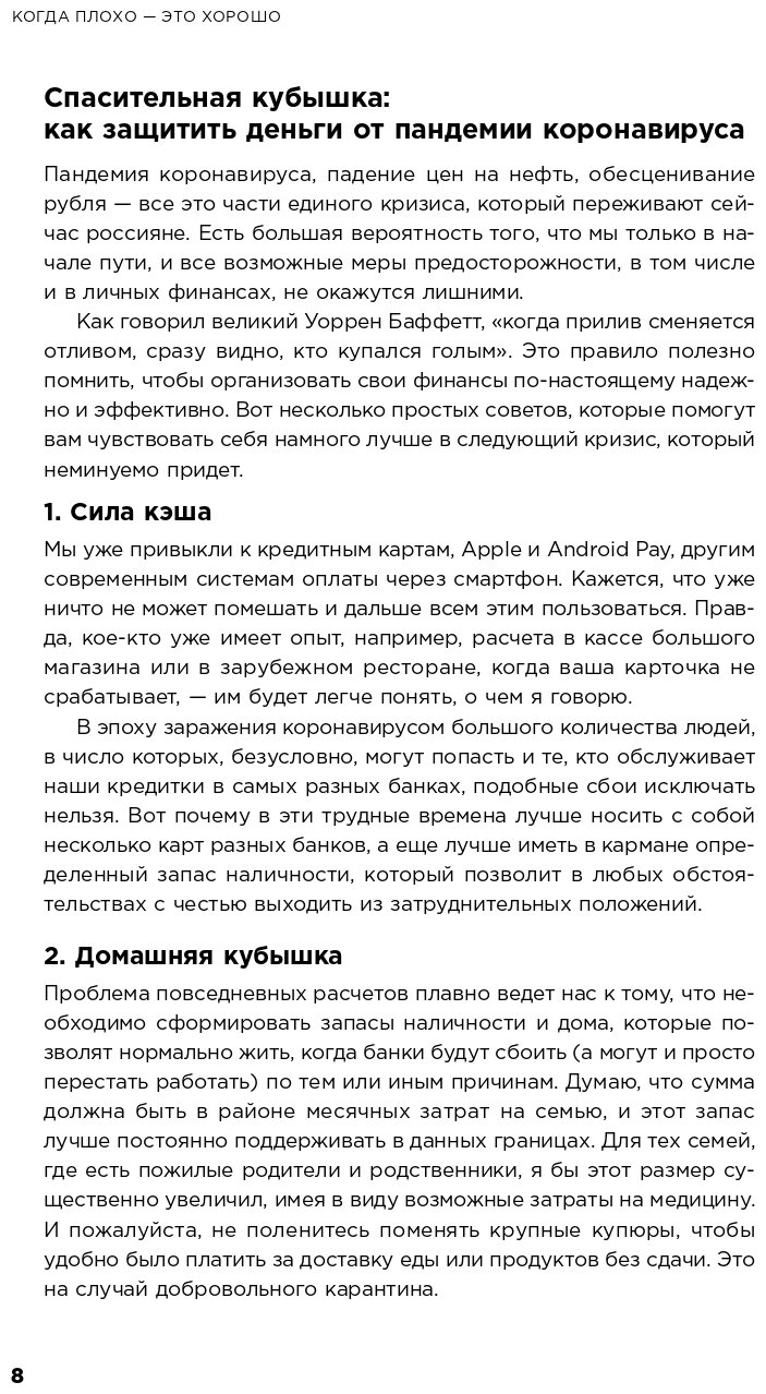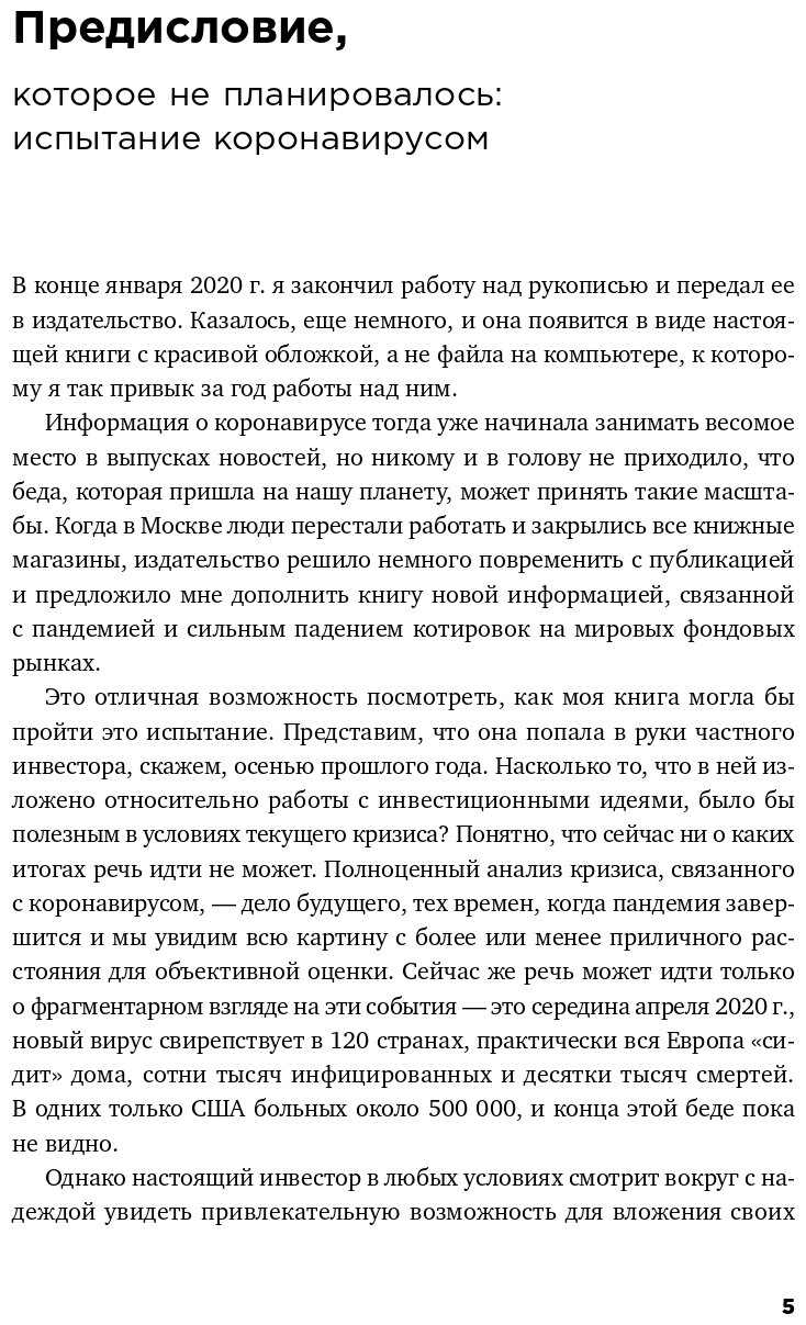 Вдохновилась темой инвестирования при прочтении книги Анастасии Веселко "Девушка с деньгами". Встал передо мной новый вопрос, а в какие именно бумаги вкладывать и по каким критериям выбирать. Искала для себя книгу с примерами и конкретными кейсами, но не очень заумную, ведь я только в начале своего инвестиционного пути. Эта книга стала для меня находкой, во-первых она адресована человеку живущему в России, во-вторых актуальна в данный момент, история с коронавирусом здесь тоже учтена, автор профессионал. Имеет большой опыт инвестирования как позитивный так и негативный. Не обещает золотых гор, учит правильно оценивать риски, рассказывает на что ориентироваться при выборе идей для инвестирования. В-третьих, книга именно для частного инвестора, рассказывает так же о психологии инвестирования и о самых распространенных ошибках новичков.