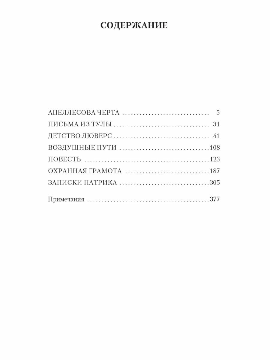 В сборнике представлены прозаические произведения Бориса Пастернака, созданные в разные годы жизни: "Апеллесова черта", "Детство Люверс", "Охранная грамота", "Воздушные пути", "Записки Патрика" и др.