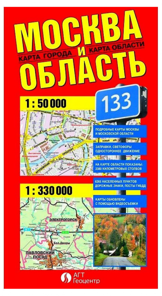 Складная карта Москвы (1: 50000) и Московской области (1: 330000): Издание содержит: - подробные карты Москвы и Московской области - заправки, светофоры, одностороннее движение - на карте области показаны: 2380 километровых столбов - 6265 населенных пунктов, дорожные знаки, посты ГИБДД - карты обновлены с помощью видеосъемки.