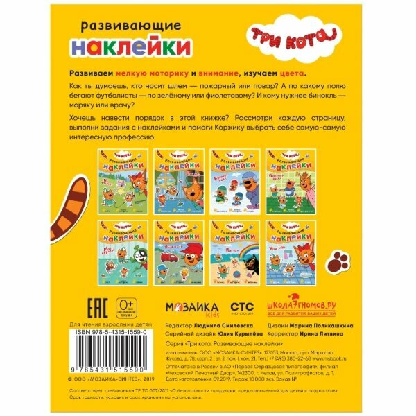 Три кота. Развивающие наклейки. Профессии (Мозаика-Синтез); МОЗАИКА kids, 2022