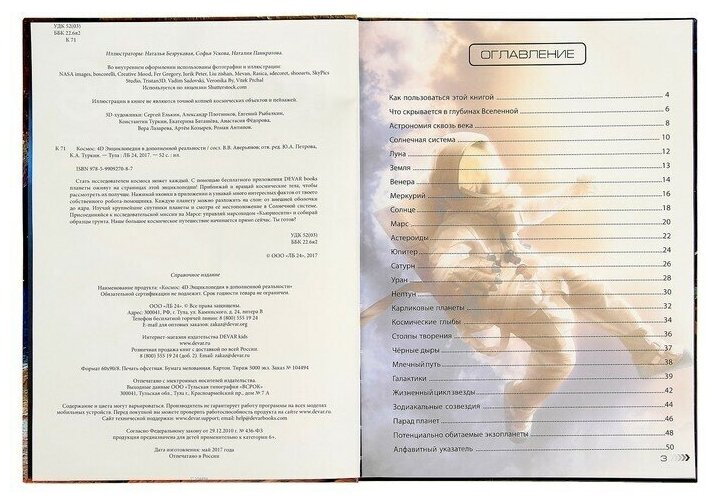 Очень интересная книга не только для детей, но и для взрослых.Можно читать как обычную книга, а можно загрузить приложение на любое устройство и играть, читать, смотреть. Книга, прям оживает. Космос, планеты, все так реально. Есть виртуальный робот, который рассказывает о планетах. дети в восторге.