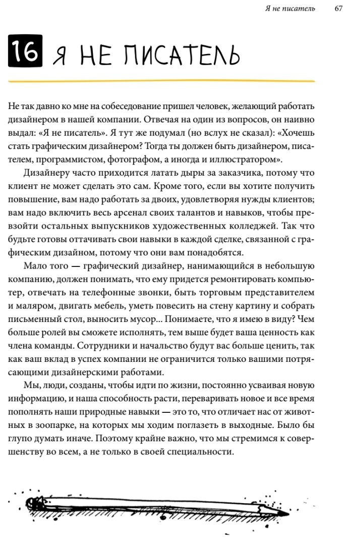 Эта книга не даст вам ничего кроме ощущения того, что с вас весьма успешно стрясли 722 рубля за рассказы Майкла Джанда "о том, как я построил свою карьеру и как мне было нелегко". Все советы носят на столько обобщенный характер (работайте много, любите своих клиентов и да воздастся вам), что можно подставлять вместо слова "Дизайнер" все, что угодно (маляр, столяр, юрист, портной) и при этом смысл не потеряется. Книга была написана как попытка скрестить основы экономики, юриспруденции, логистики с дизайнерской деятельность, в итоге получилось довольно скучной (при этом ни один аспект полностью не был раскрыт).