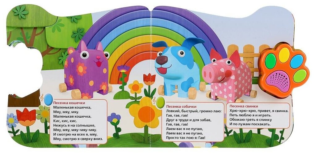 .Добрые персонажи мультфильмов приглашают ребёнка спеть вместе. Только представьте, как будет рад ребёнок, когда узнает, что у него в руках волшебная, музыкальная книжка. Нажмёте на кнопочку на лапке героя на обложке - и зазвучит музыка, нажмите на кнопочку ещё раз - и музыка утихнет.