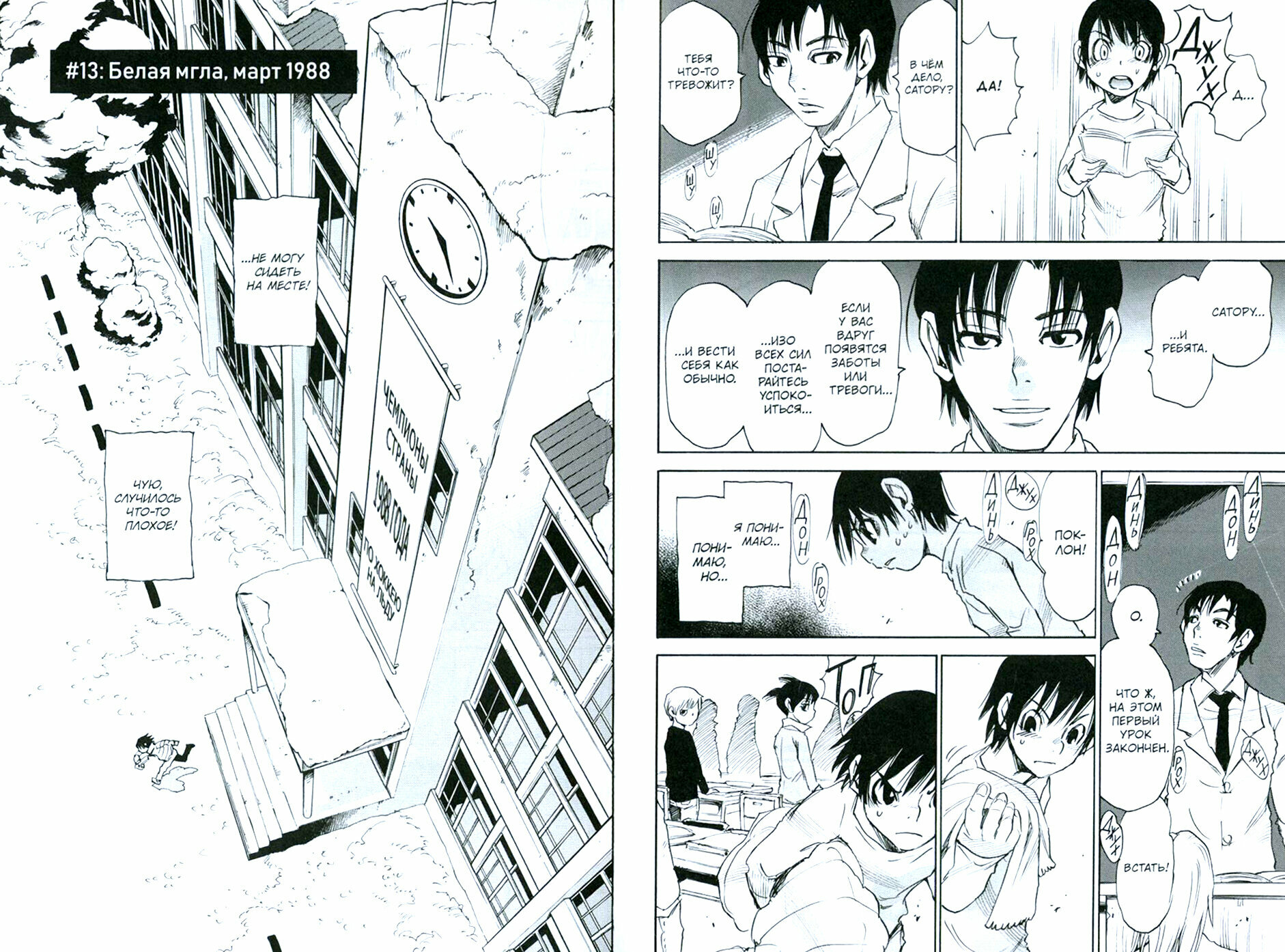 Обещание, которое им с Хинадзуки не удалось сдержать. Обуреваемый неведомыми ему прежде ужасом и отчаянием, Сатору пускается наутёк, и в тот же миг мир окутывает тьма. Открывает глаза он... в 2006 году. Там Сатору ждала реальность, в которой его подозревают в убийстве матери.