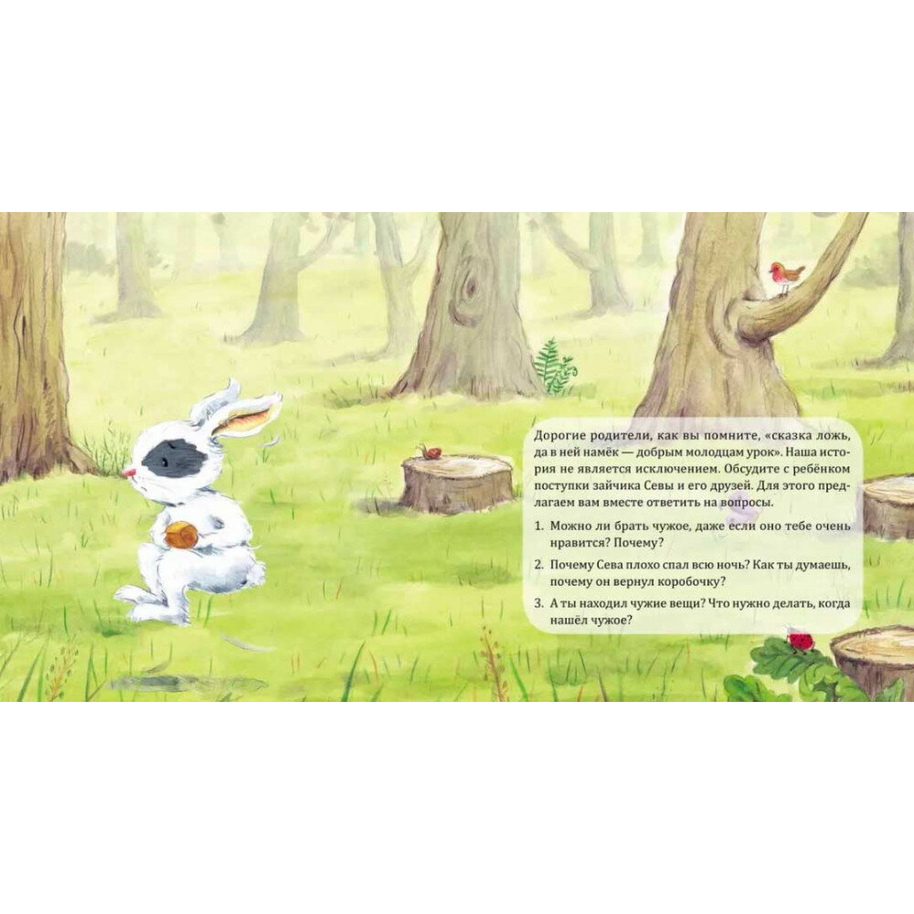Однажды зайчик Сева нашёл в лесу красивую коробочку. Она ему так понравилась, что он взял её себе… А что случилось дальше, вы узнаете из сказки. В конце книги предлагаются вопросы, составленные детским педагогом-психологом.