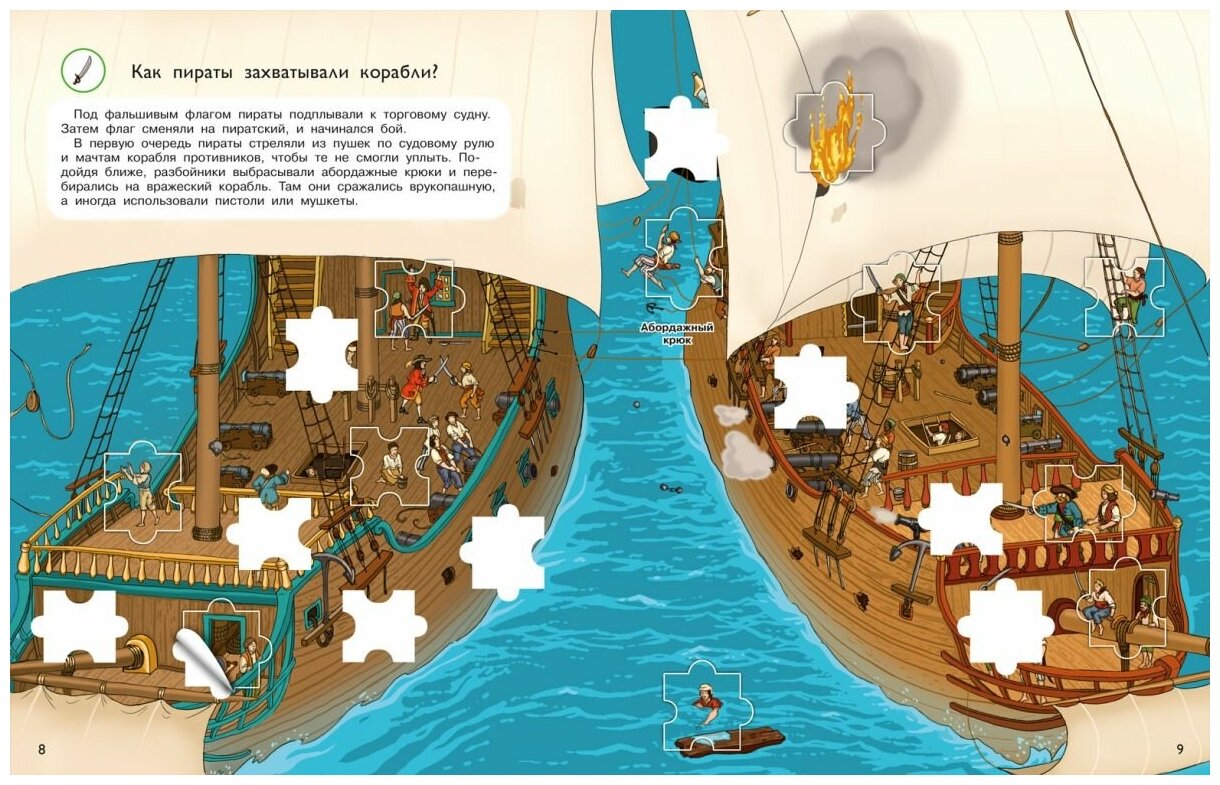 Издание расскажет: кто такие пираты и как выглядел их корабль, из кого состояла команда пиратов и как они захватывали корабли, о самых знаменитых пиратах и какой у них был флаг, где можно было встретить пиратов и за какой добычей они охотились, что делали пираты на суше и как ремонтировали свои корабли, откуда мы столько знаем о пиратах и как устроить пиратскую вечеринку.