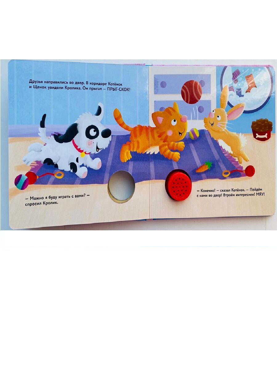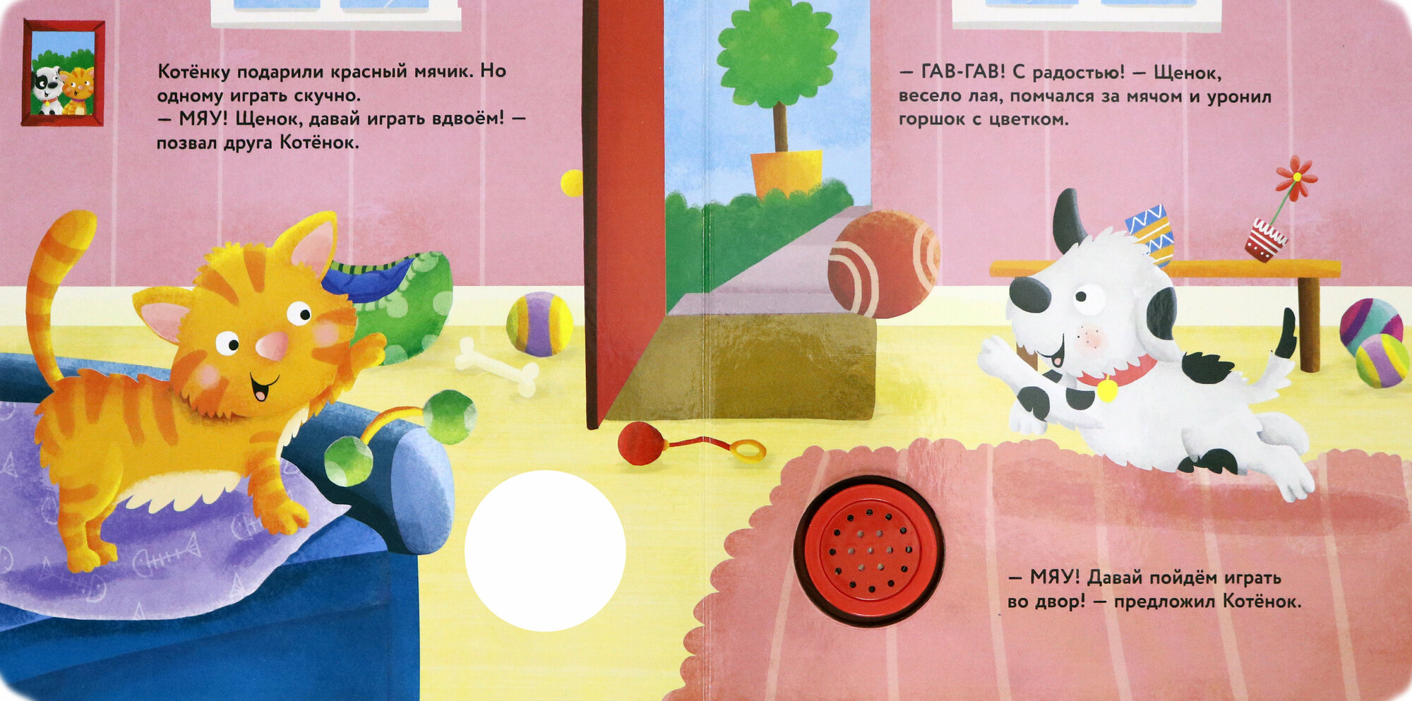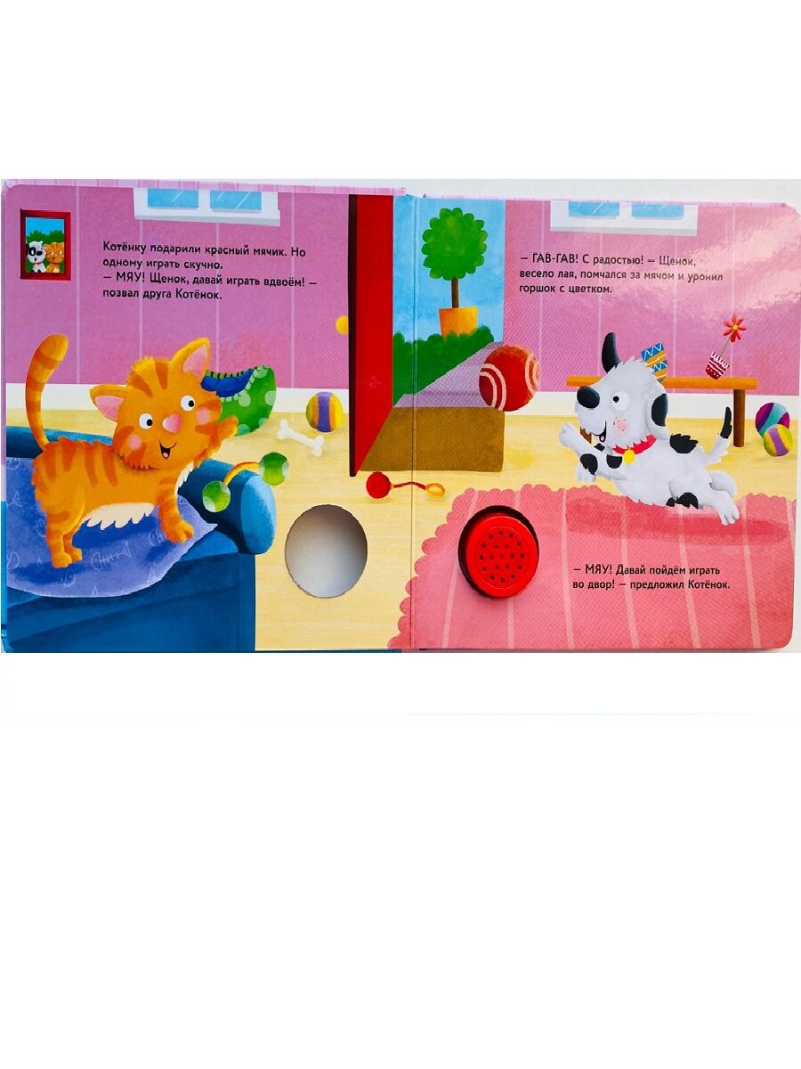 В этой книжке Котенок собирает друзей, чтобы поиграть в новый красный мяч. Нажимай на кнопку, и услышишь голос котенка. Мяу, мяу!