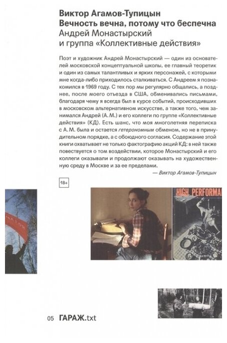 Издание иллюстрировано фотографиями и авторскими коллажами из архива Виктора Агамова-Тупицына и Маргариты Мастерковой-Тупицыной, а также из архива Андрея Монастырского и группы «Коллективные действия». Многие из материалов, представленных в книге, публикуются впервые.