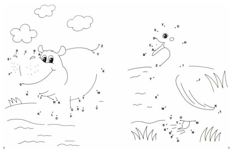 Эта книжка поможет вашему ребёнку легко выучить и запомнить буквы английского алфавита, соединяя точки и рисуя забавных животных. А ещё их можно раскрасить!