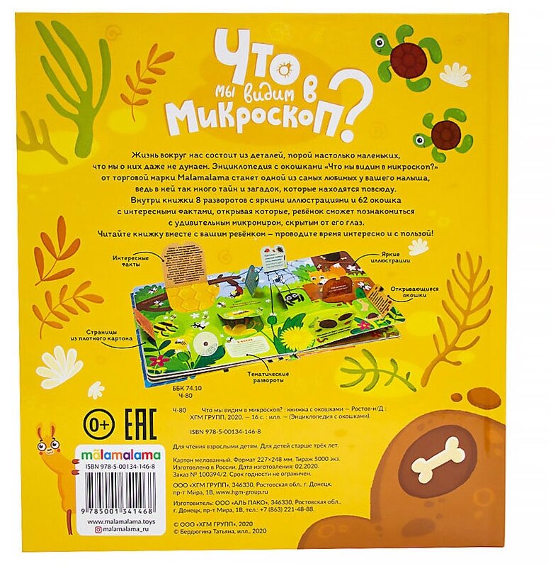 Жизнь вокруг нас состоит из деталей, порой настолько маленьких, что мы о них даже не думаем. Книжка с окошками "Что мы видим в микроскоп?" от торговой марки Malamalama станет одной из самых любимых у вашего малыша.