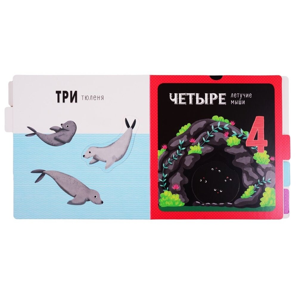 Замечательная книжка с выдвижными элементами. Яркая, красочная, плотная. Крупные цифры. Отличные рисунки. Цена - качество соответствует. Ребёнок часто берет и рассматривает книжку, изучаем цифры, животных, изображённых в книжке. Малышу очень нравится. Очень довольны данным приобретением. Всем рекомендую!