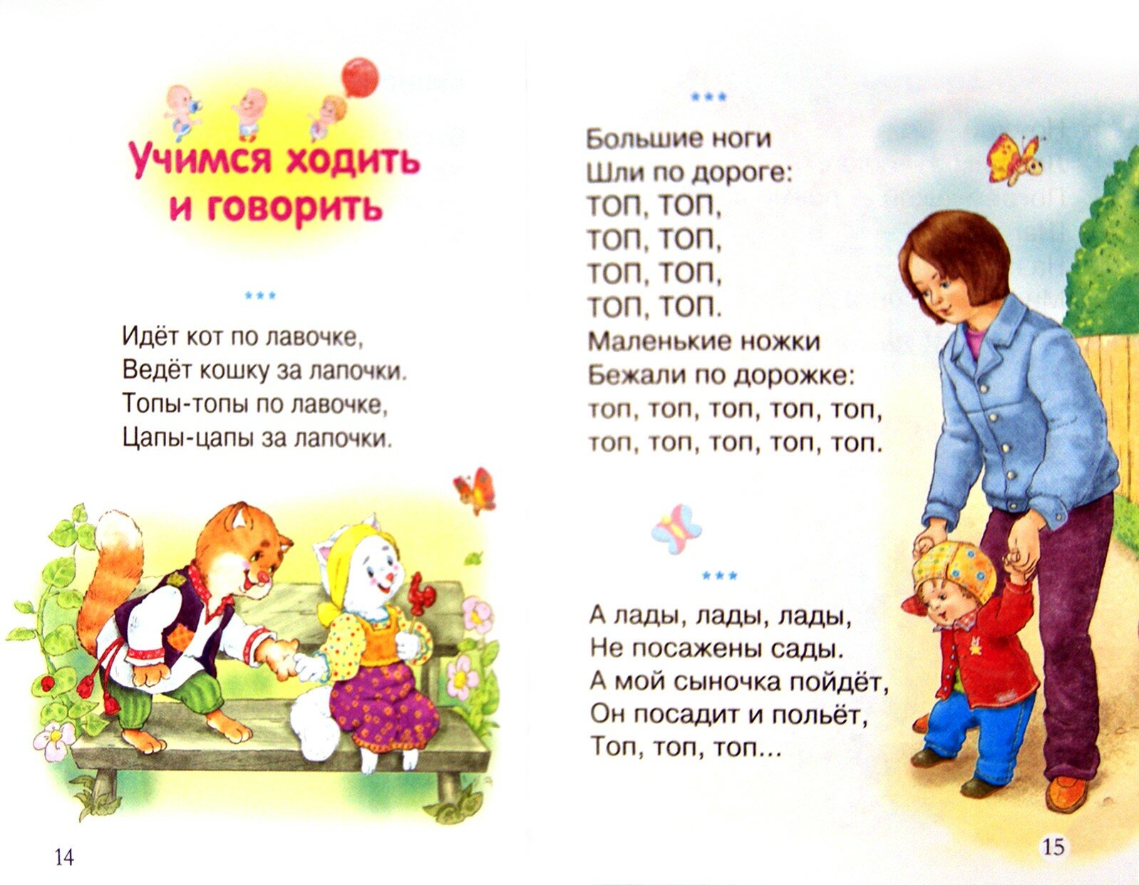 Хороший сборник детских стишков и потешек! Размер книжки компактный, удобный для детских ручек. Все стихи поделены на темы: пробуждение, умывание, завтрак, обед, ужин, первые навыки и слова, купание и отход ко сну, что позволяет дополнить ежедневные ритуалы новыми словами, для развития речи малыша.