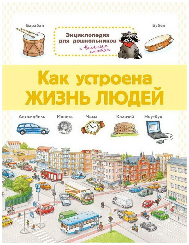 Энциклопедия "Как устроена жизнь людей" рассказывает детям про разные сферы жизни людей. Это и транспорт, и о доме, и о детском саду. Много внимания энциклопедия уделяет теме времени. Объясняется понятие времени и как люди его используют для работы и для отдыха. Отдельные страницы книги посвящены теме детского сада и подготовки к школе, чтобы ребёнок мог быстрее адаптироваться к первому классу.
