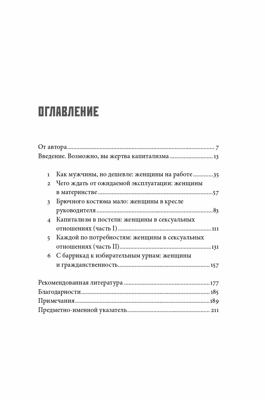 Антрополог, профессор Университета Пенсильвании, специалист по России и Восточной Европе пишет о самых важных сторонах жизни женщины — работе, воспитании детей, самореализации, сексе и отношениях, гражданстве и лидерстве, а также о домогательствах и дискриминации. Основываясь на огромном массиве данных, она делает выводы, что современный капитализм приводит к закрепощению женщины во множестве сфер.