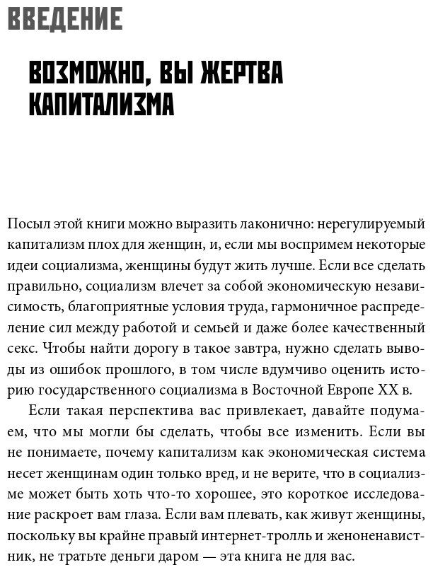 Начал читать книгу в качестве подготовки курсовой работы. Нужна была хорошая аналитика по трудоустройству женщин в странах Восточного блока. Должен сказать, что книга будет полезна абсолютно любой женщине прямо сейчас, и интересна любому мужчине. Потому что она не столько про прошлое, сколько про будущее. Например, как опыт соц. стран может помочь женщине и делать карьеру, и родить ребёнка.