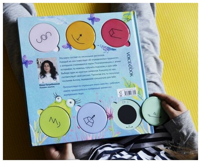 Предложите малышу выбрать один из круглых символов (или выберете символ сами для себя -- истории в книге подходят и детям, и взрослым). Символы-магниты прилагаются к книге. Каждому символу соответствует своя волшебная история. Прочитайте ее вместе с ребенком и бережно прикоснитесь, словно воздушным перышком, к потаённым граням его внутреннего мира. Малыш получит послание, которое поможет ему справиться с тем, что вызывает у него переживания в данный момент, например, со страхом, с одиночеством, с обидой.