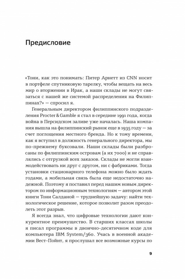 Тони Салдана, который занимался цифровизацией в P&G, утверждает, что главная причина неудач в отсутствии четких целей и дисциплины. В своей книге он рассказывает о пятиступенчатой модели цифровой трансформации, благодаря которой вы сможете встроить изменения в ДНК вашей компании.
