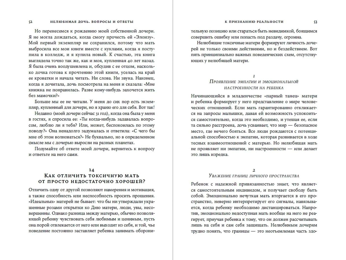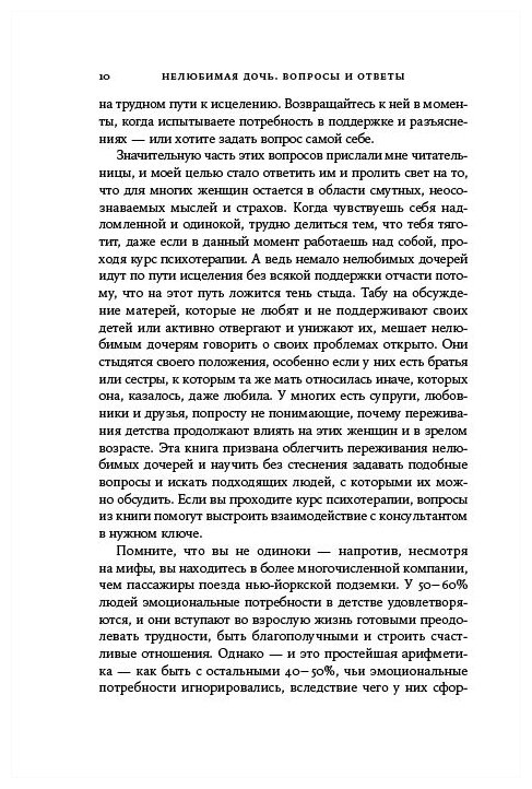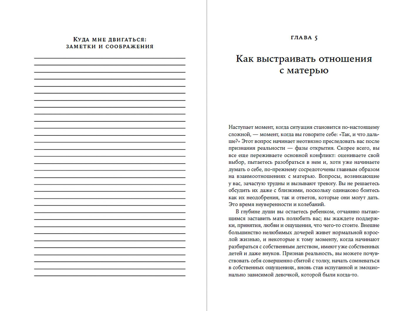 «Чтобы решить проблему, нужно сначала увидеть ее. Невозможно залечить невидимую рану. Невозможно иметь дело со своими эмоциями, если вы не вполне их осознаете, не в состоянии говорить о них и не отдаете себе отчета в том, что конкретно вы чувствуете. Невозможно также выработать стратегию действий, пока вы не поймете, с кем именно предстоит иметь дело, — а это ваша мать и все члены семьи, в которой вы росли. Последствия трудного или токсичного детства многочисленны и цепки — буквально как щупальца. Все это правда, но верно также и то, что выход существует».