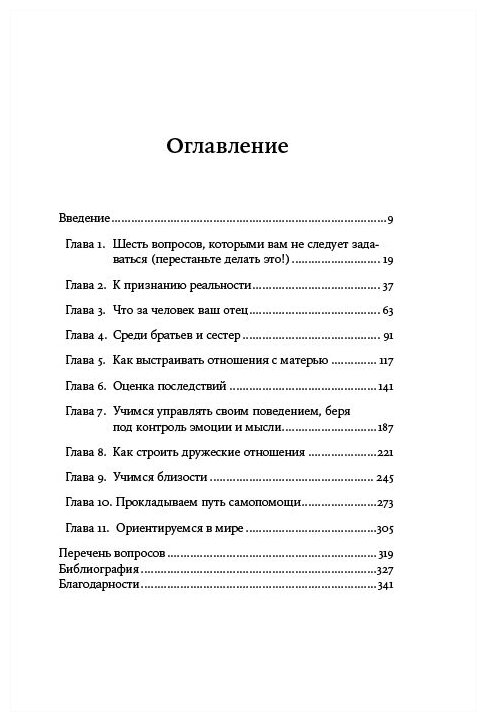- Всего в книгу вошли 110 вопросов и ответов, и все они сгруппированы в соответствии со стадиями преодоления последствий токсичного детства. Среди ответов есть как длинные и подробные, так и короткие. Самые развернутые из них посвящены темам, которые были недостаточно освещены или не рассмотрены автором вовсе в ее предыдущей книге.