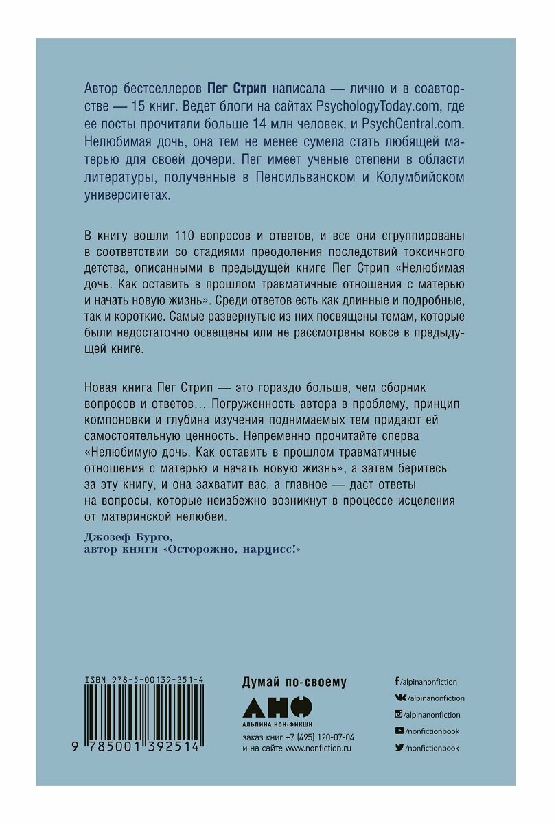 «Нелюбимая дочь. Вопросы и ответы» дополняет предыдущую книгу Пег Стрип «Нелюбимая дочь. Как оставить в прошлом травматичные отношения с матерью и начать новую жизнь» и станет хорошим подспорьем на трудном пути к исцелению.