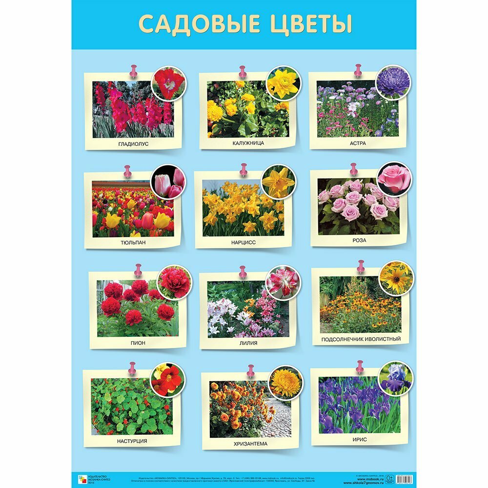 Плакат большого формата «Садовые цветы» познакомит детей с различными видами садовых цветов. Четкие, яркие фотографии обязательно заинтересуют ребят и помогут усвоить новые знания. Наглядный материал может быть использован на занятиях по ознакомлению с окружающим миром, для развития речи и мышления.