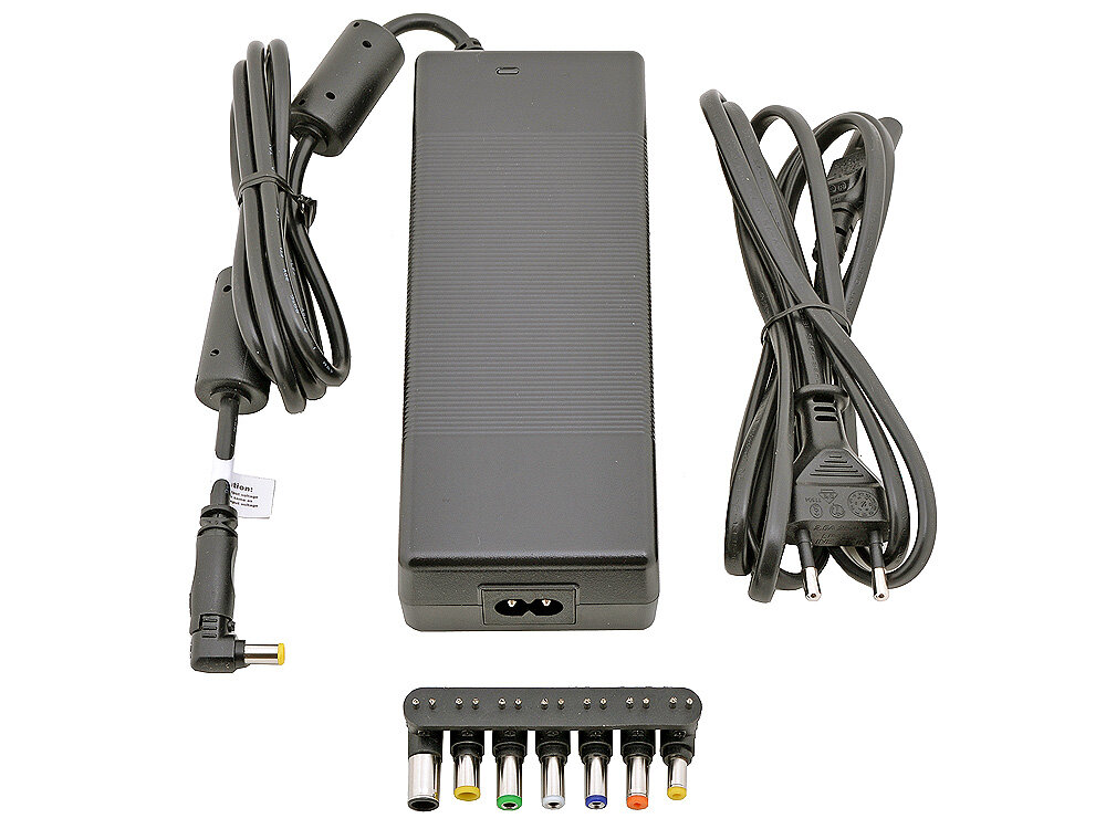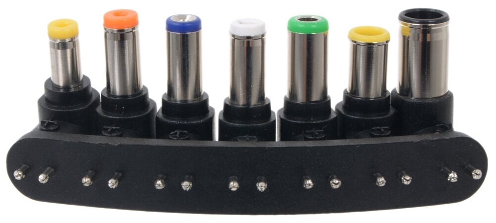 Универсальный сетевой блок питания для ноутбуков большинства производителей. Для точного подбора марки и модели заряжаемого ноутбука на 7-и штекерах есть специальные цветовые метки. Нужное напряжение выставится автоматически.