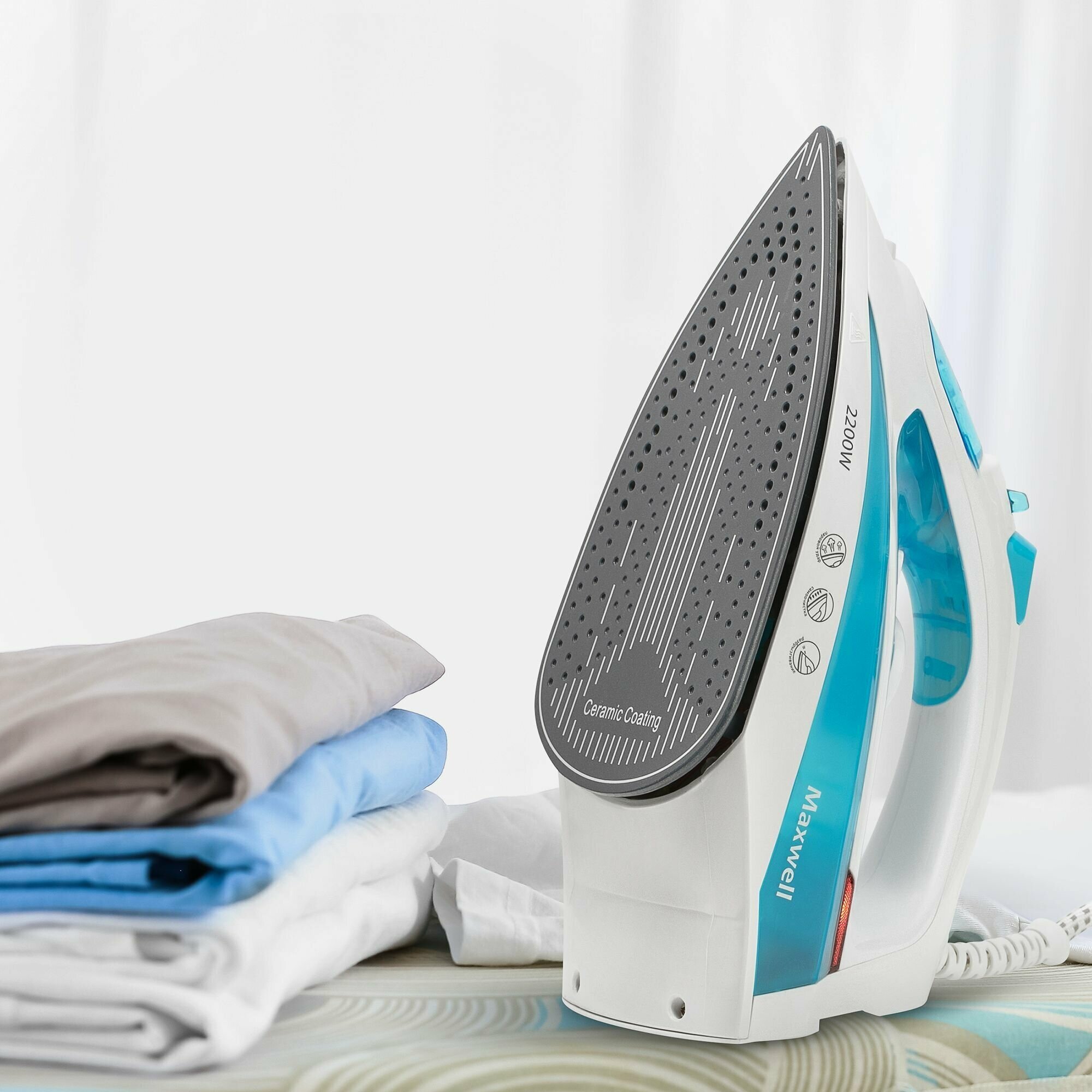 Утюг изготавливается под известным брендом Maxwell, известным своим высоким качеством и доступной ценой. Он обладает мощностью 2200 Вт, поэтому быстро разогревается и остывает. Сделан утюг в современном дизайне, корпус выполнен в белом и голубом цветах. Благодаря керамической подошве легко скользит по ткани, не оставляет следов. Утюг прослужит долгое время благодаря функции самоочистки. С особо сильными складками поможет справиться функция распыления и парового удара.