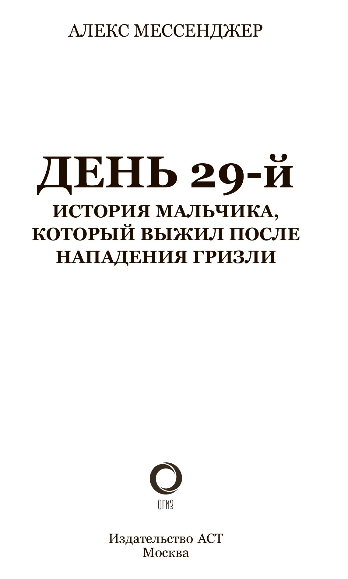 День 29-й. История мальчика который выжил после нападения гризли (Алекс Мессенджер); Издательство АСТ, 2019