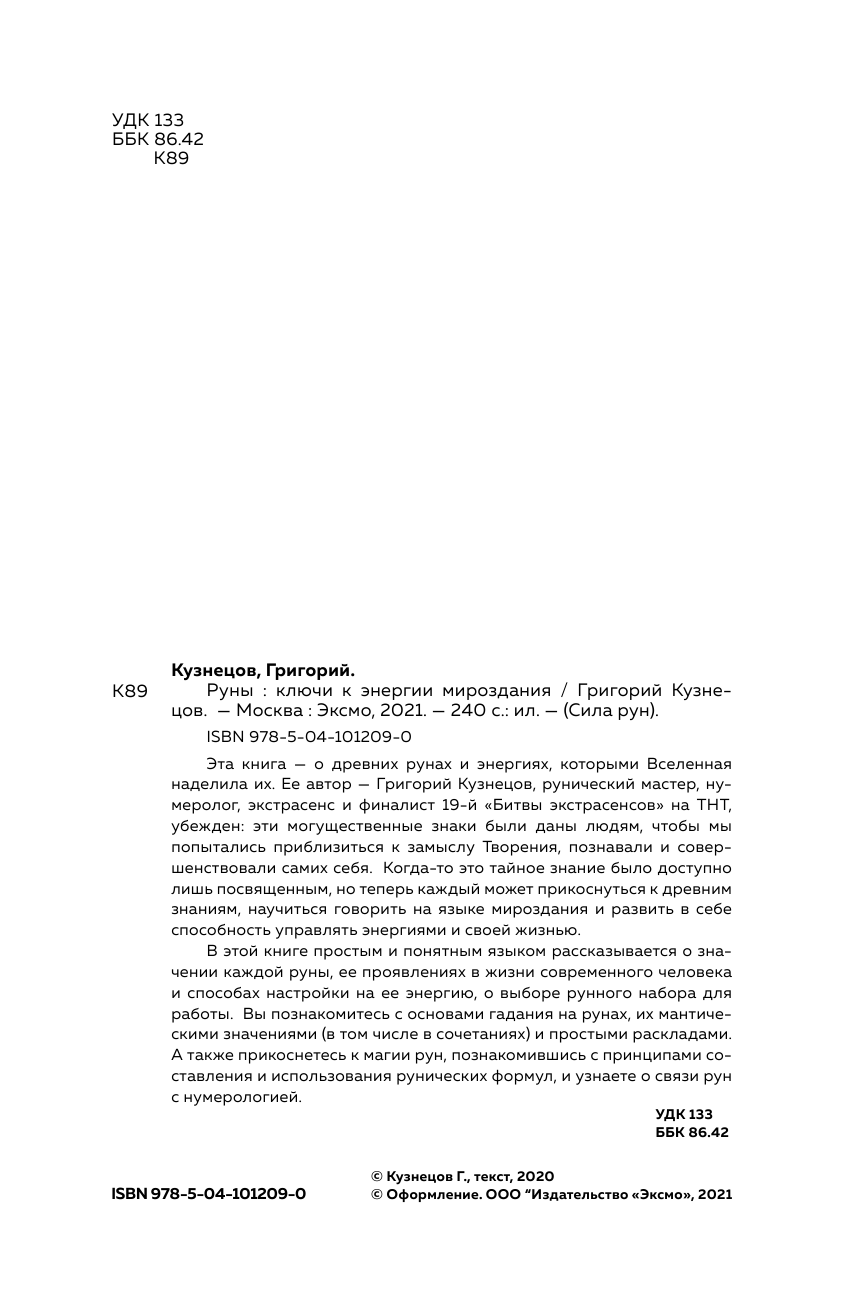 Руны. Ключи к энергии мироздания (Григорий Кузнецов); Эксмо, 2021