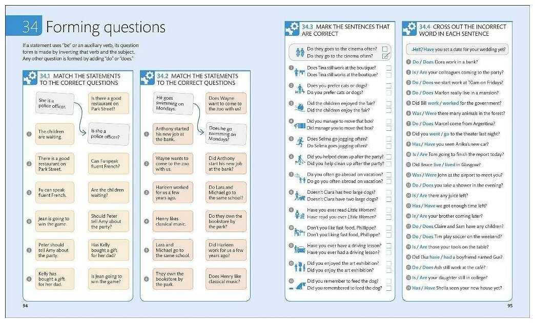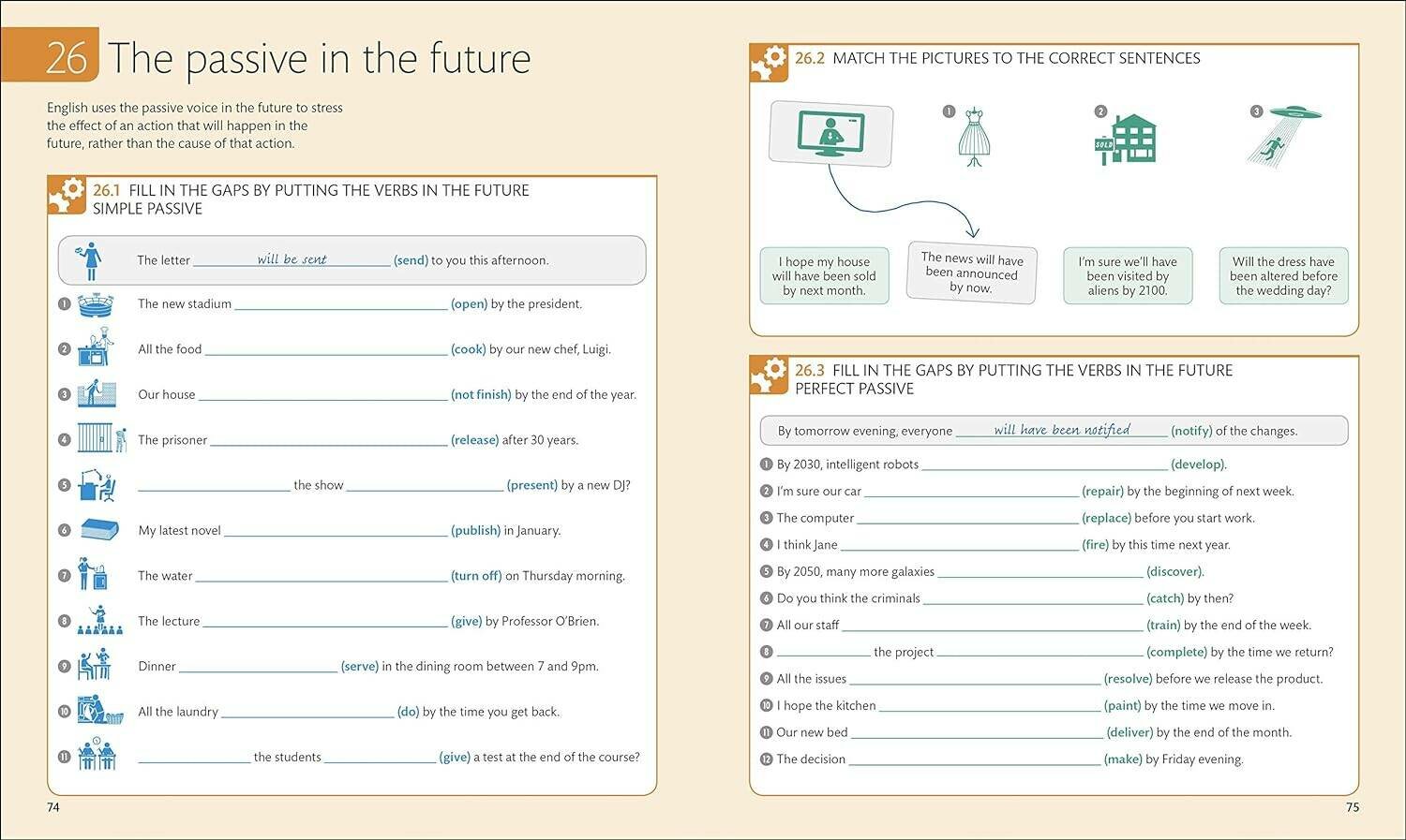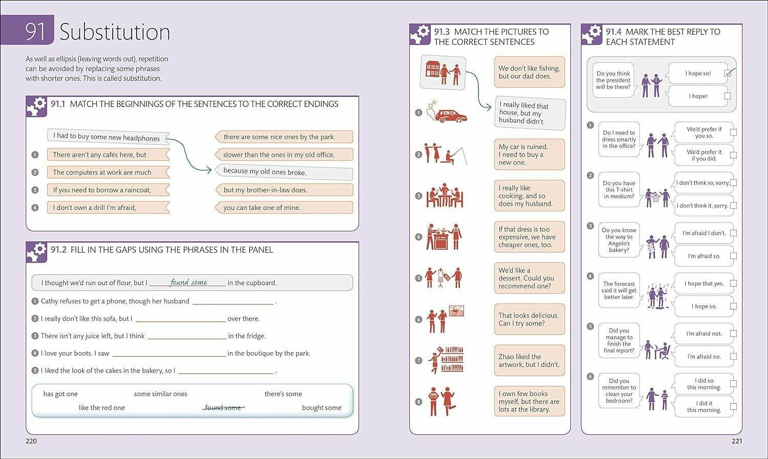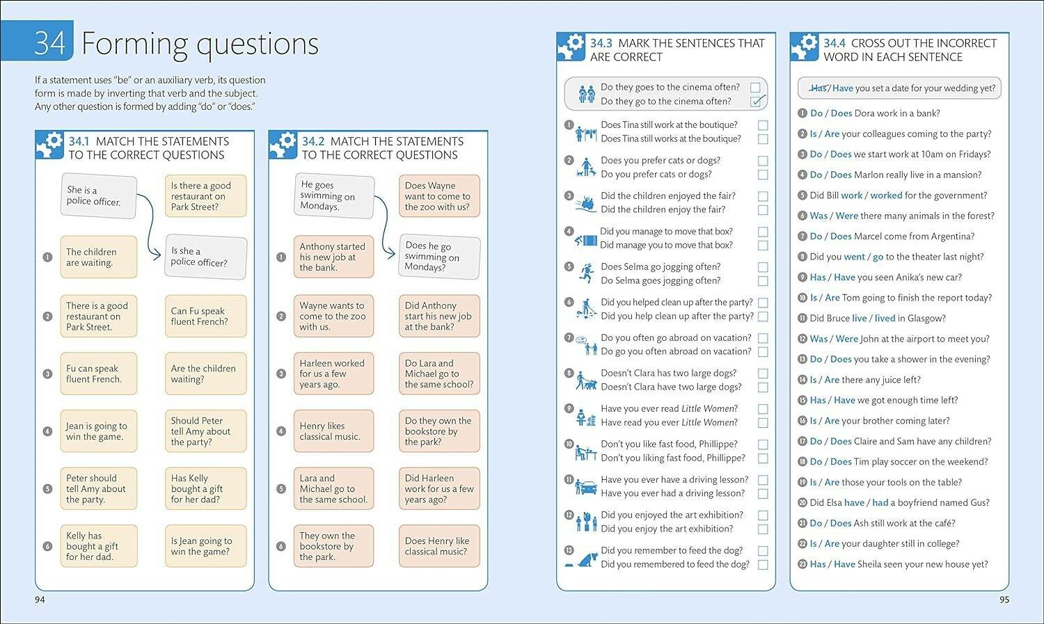 Вот эта серенькая увесистая книжечка - великолепное дополнение к грамматическому справочнику от издательства DK. Чудесному, лаконичному, очень наглядному справочнику, скажу я вам. От простого к сложному, тема за темой, страница за страницей, он наводит порядок в голове. А это милое толстенькое дополнение также страница за страницей, как ответственный тренер, переводит умение в хороший навык.